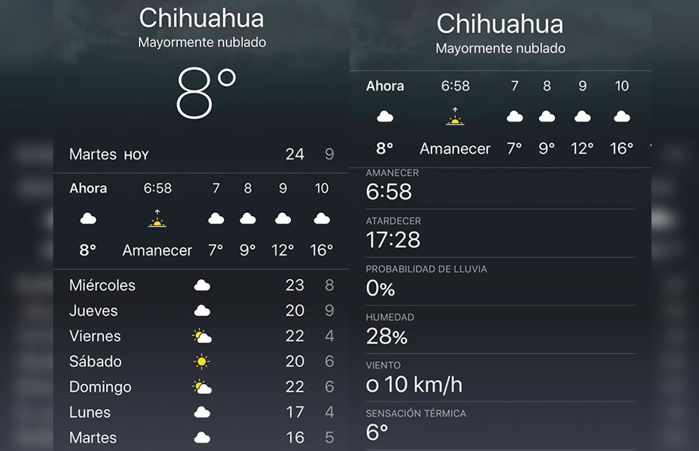 Chihuahua.- Este martes la capital del estado amaneció con una temperatura de 8 grados centígrados con el cielo mayormente nublado.