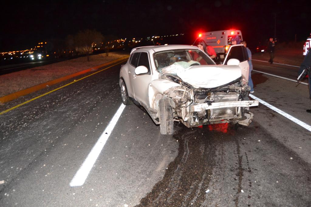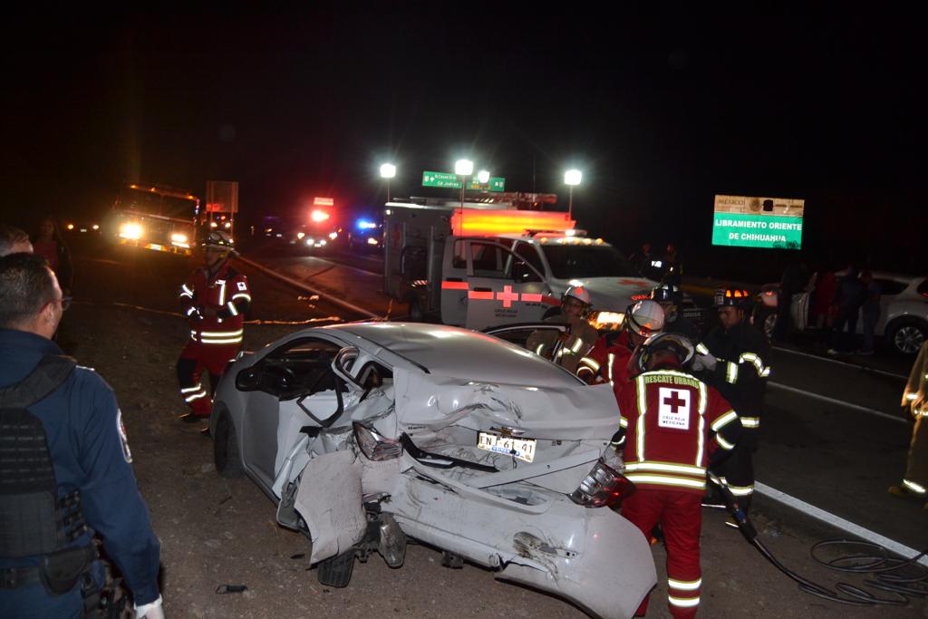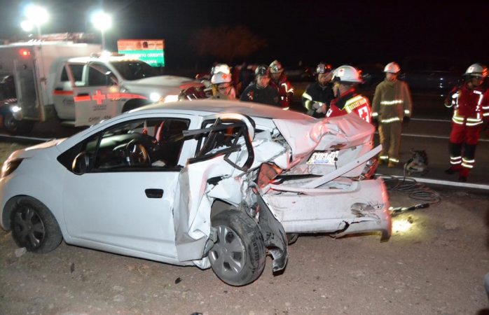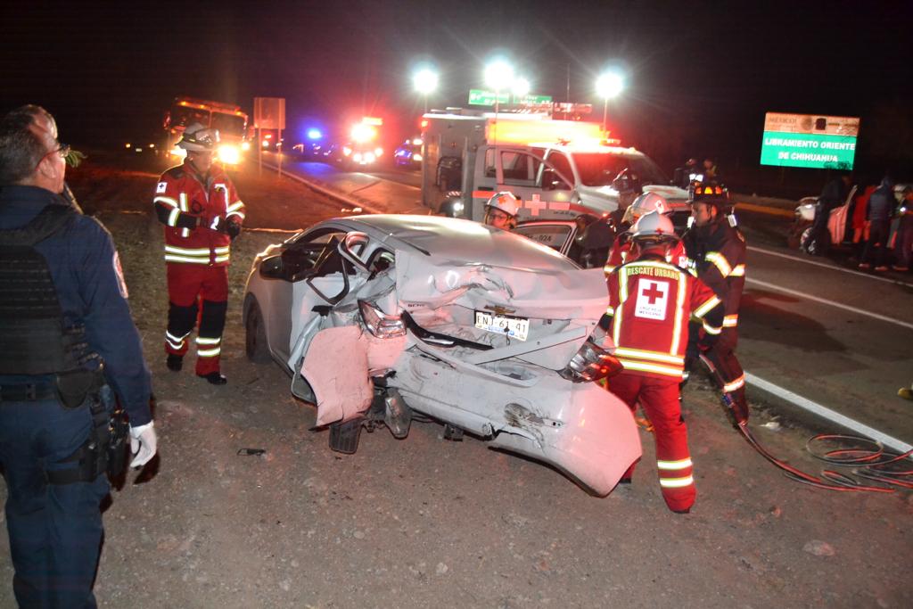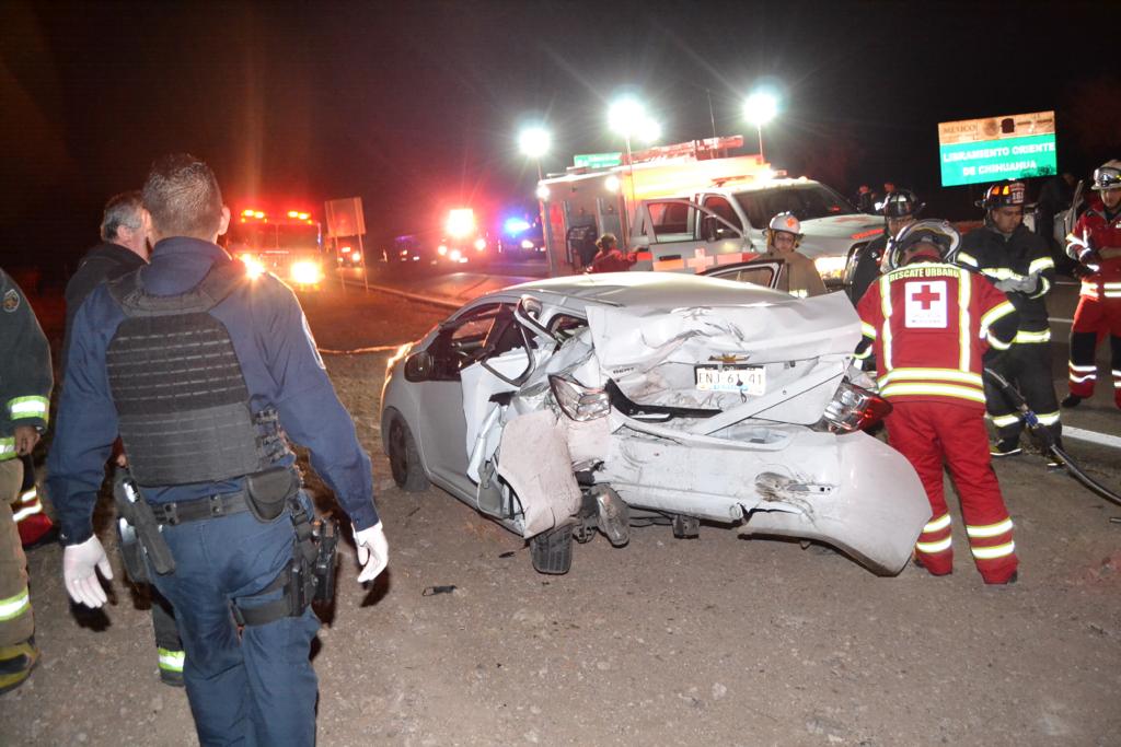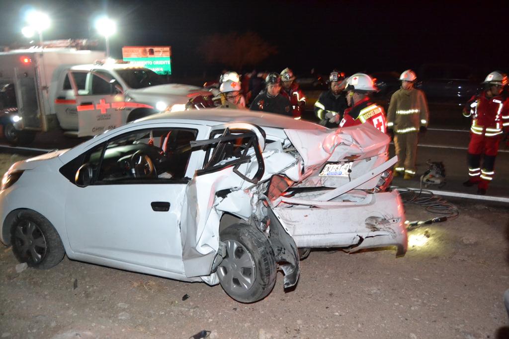 Chihuahua.- Tres personas resultaron lesionadas de consideración tras un fuerte impacto registrado a la altura del kilómetro 22 de la carretera a Juárez.