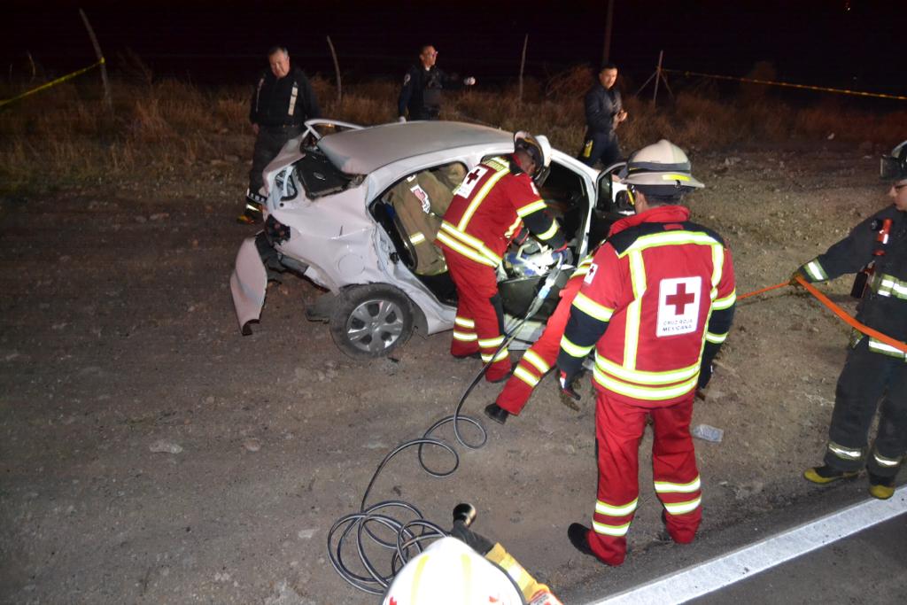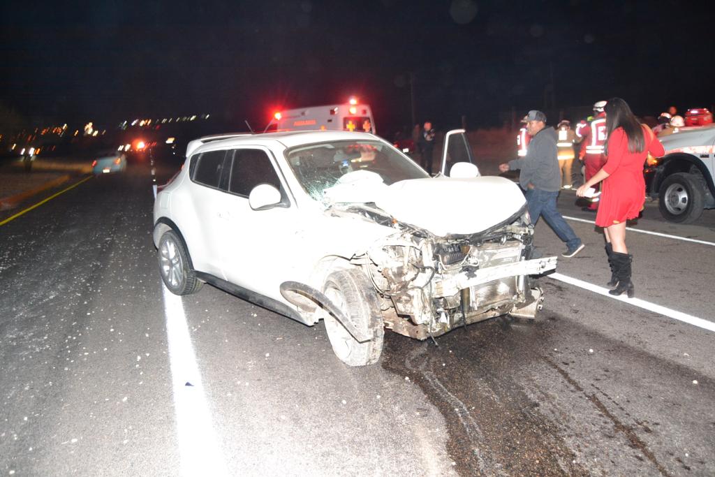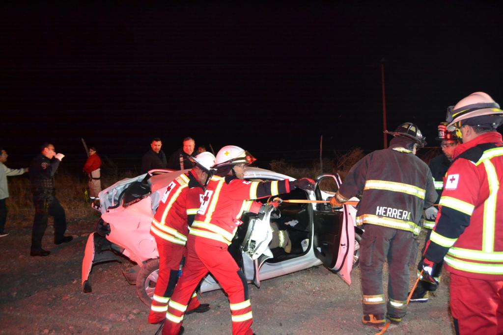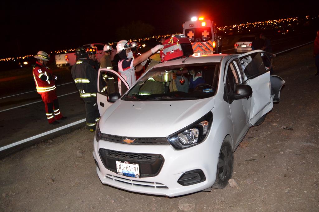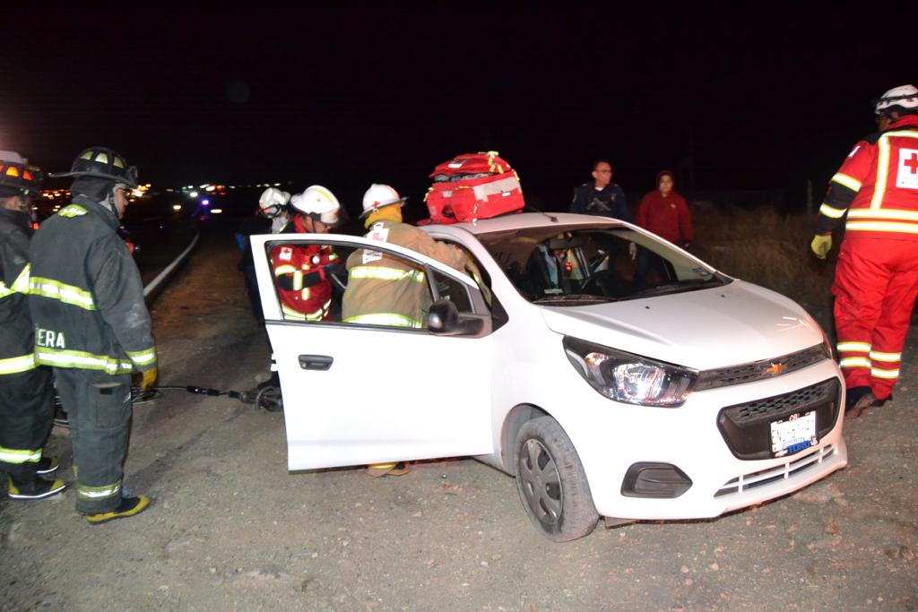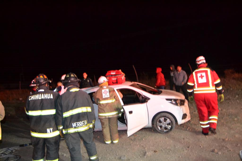 Chihuahua.- Tres personas resultaron lesionadas de consideración tras un fuerte impacto registrado a la altura del kilómetro 22 de la carretera a Juárez.