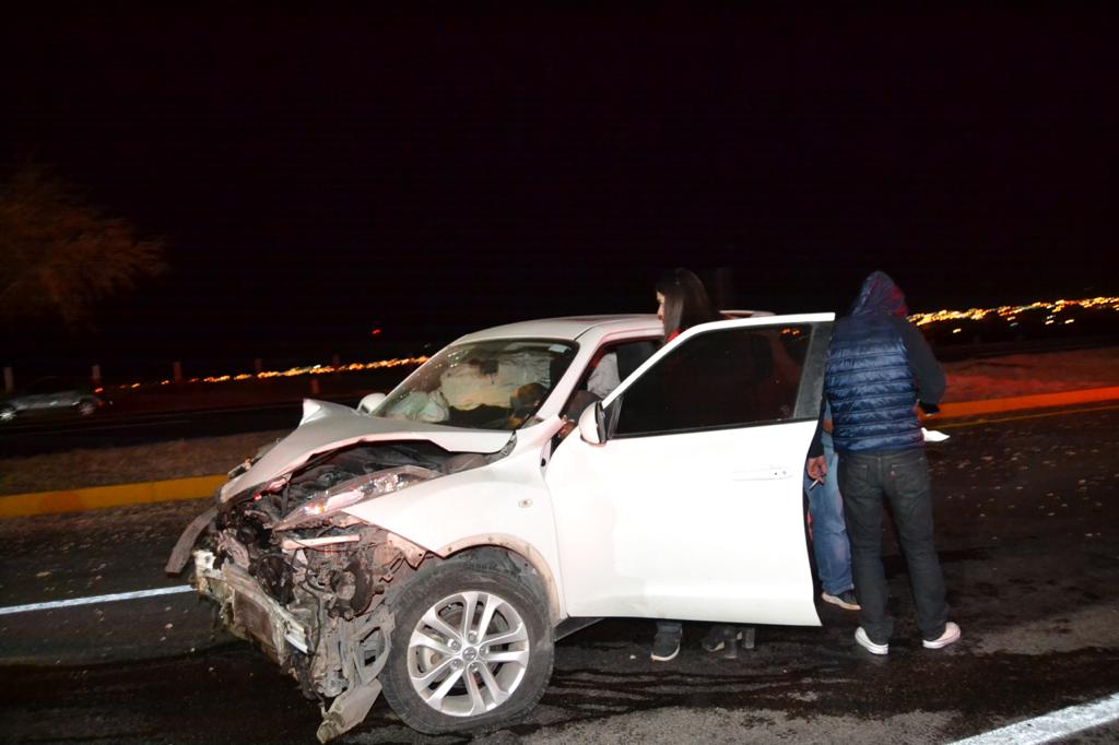 El conductor de un vehículo Nissan juke de color blanco, impactó a toda velocidad en la parte trasera un vehículo Chevrolet beat de color blanco.