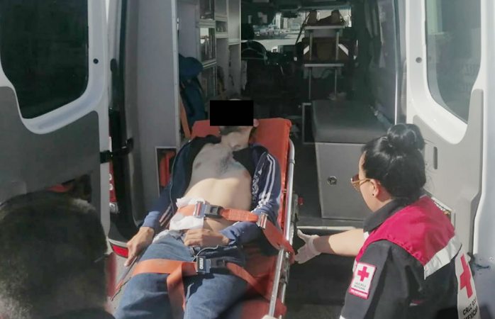 Paramédicos de Cruz Roja auxiliaron a la persona herida y la trasladaron a un hospital.