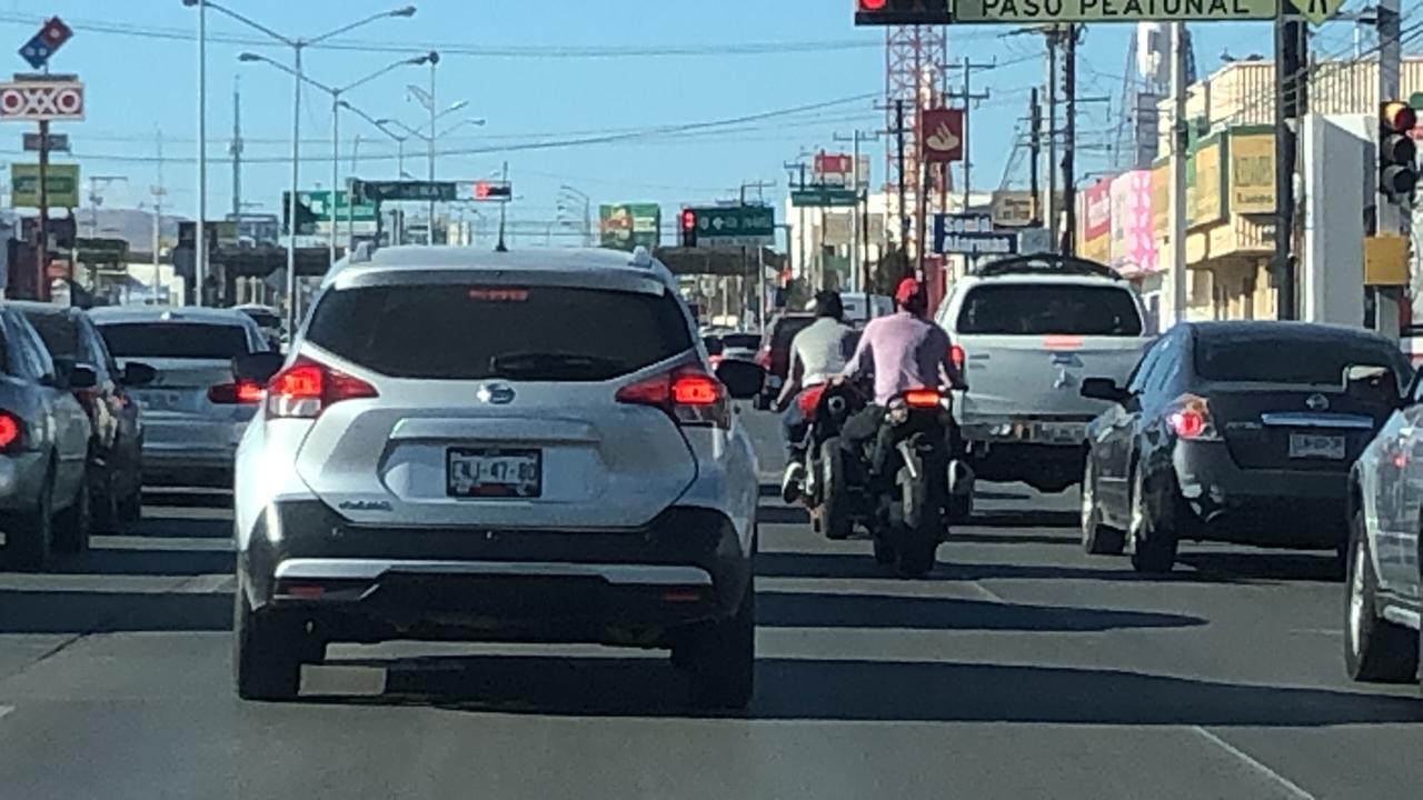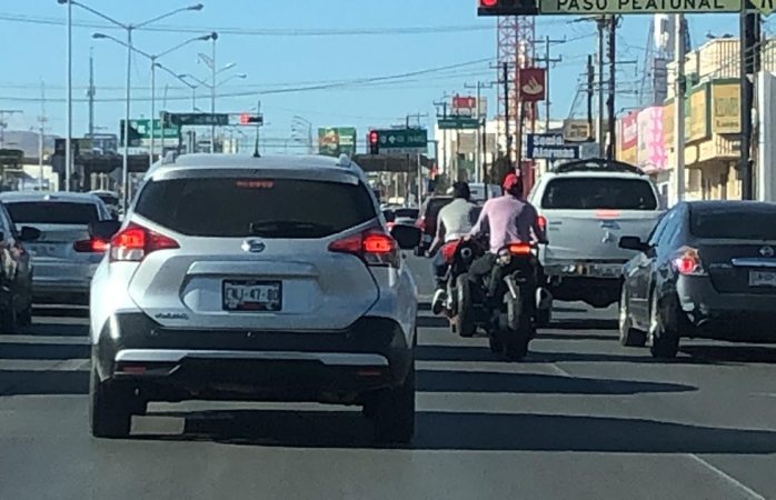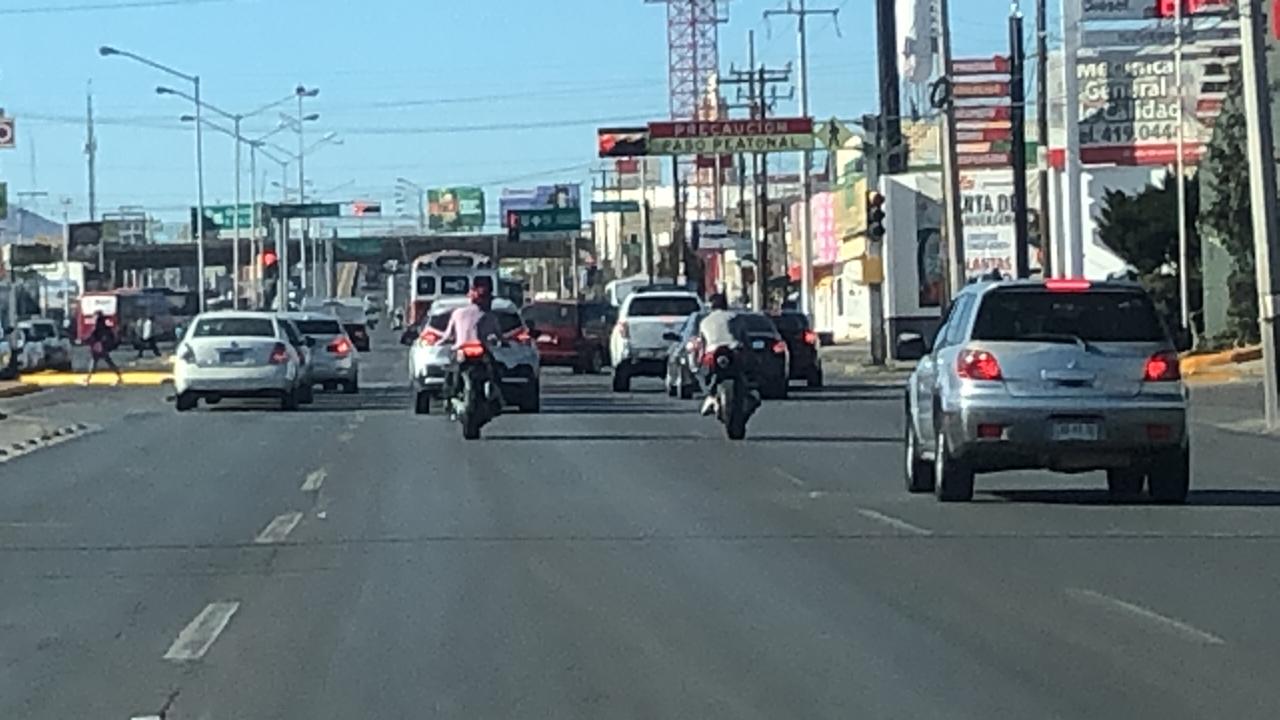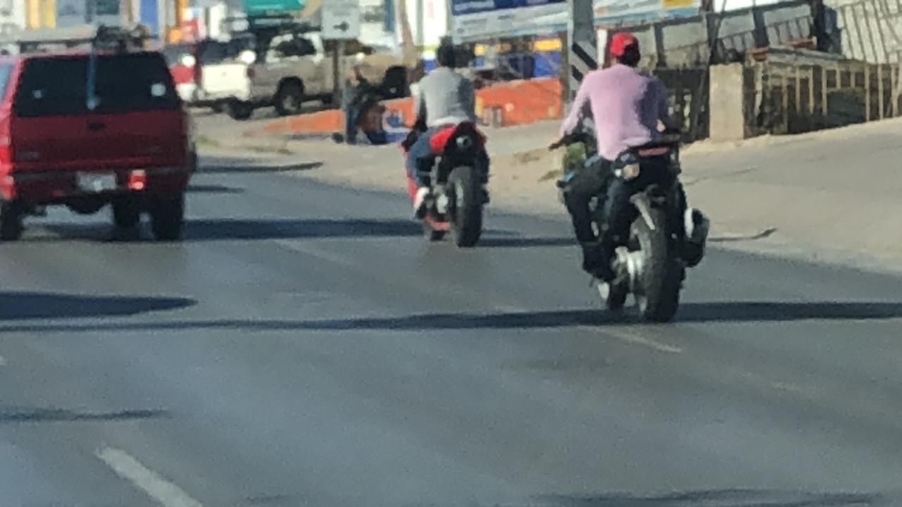 Chihuahua.- Un par de jóvenes motociclistas a bordo de unidades deportivas fueron captados sobre la avenida Tecnológico y calle Broadway y no traían casco.