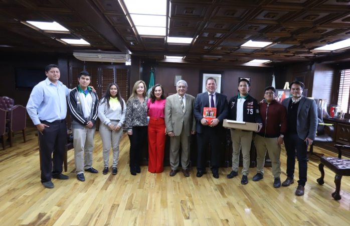Allí, el funcionario recibió a la comitiva del plantel, quienes acudieron para agradecer la donación de un kit de robótica por parte del administrador de la Ciudad, el cual servirá para que los estudiantes representen a Ciudad Juárez en el Torneo Nacional de Robótica que se celebrará en Tijuana, Baja California del 3 al 7 de marzo.