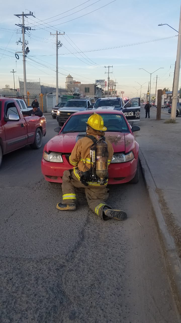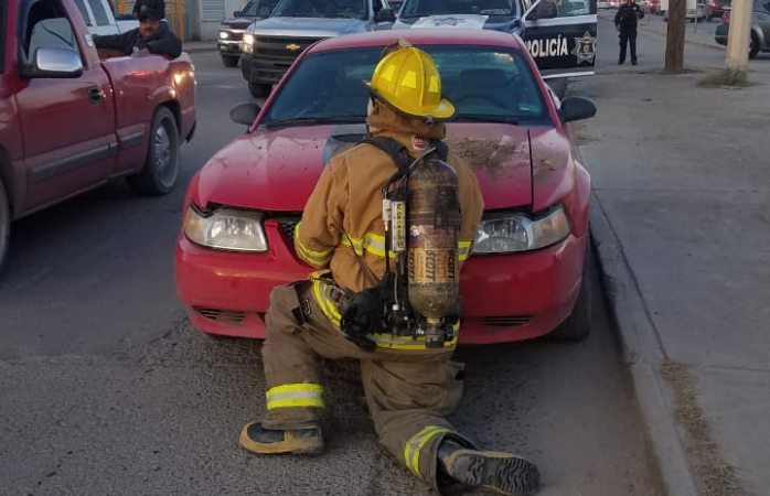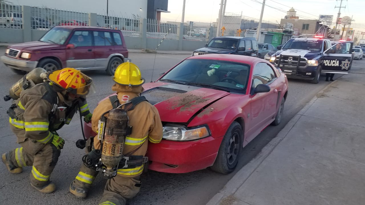En la avenida López Mateos y Genaro Vázquez, de la colonia Tierra y Libertad, se presentó un conato de incendio en un vehículo Ford Mustang, modelo 1999, con placas fronterizas.