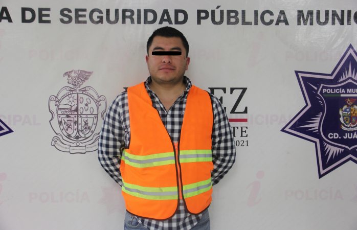 La detención fue en el cruce de las calles Thomas Fernández y Parque Juárez, de la colonia Los Parques, luego de que agentes municipales que realizaban labores de prevención y vigilancia por este sector, fueron interceptados por un ciudadano que les pidió ayuda.