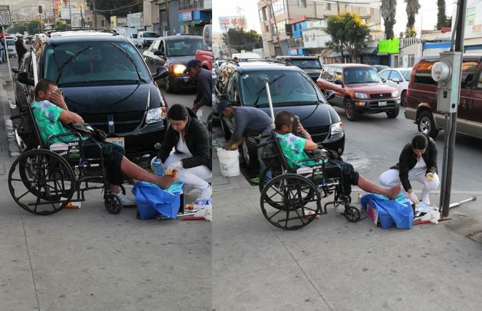 Baja California.- Una joven enfermera fue captada sanando las heridas a un hombre en situación calle que se encuentra en silla de ruedas, acto que recibió aplausos en las redes sociales.