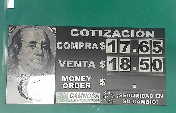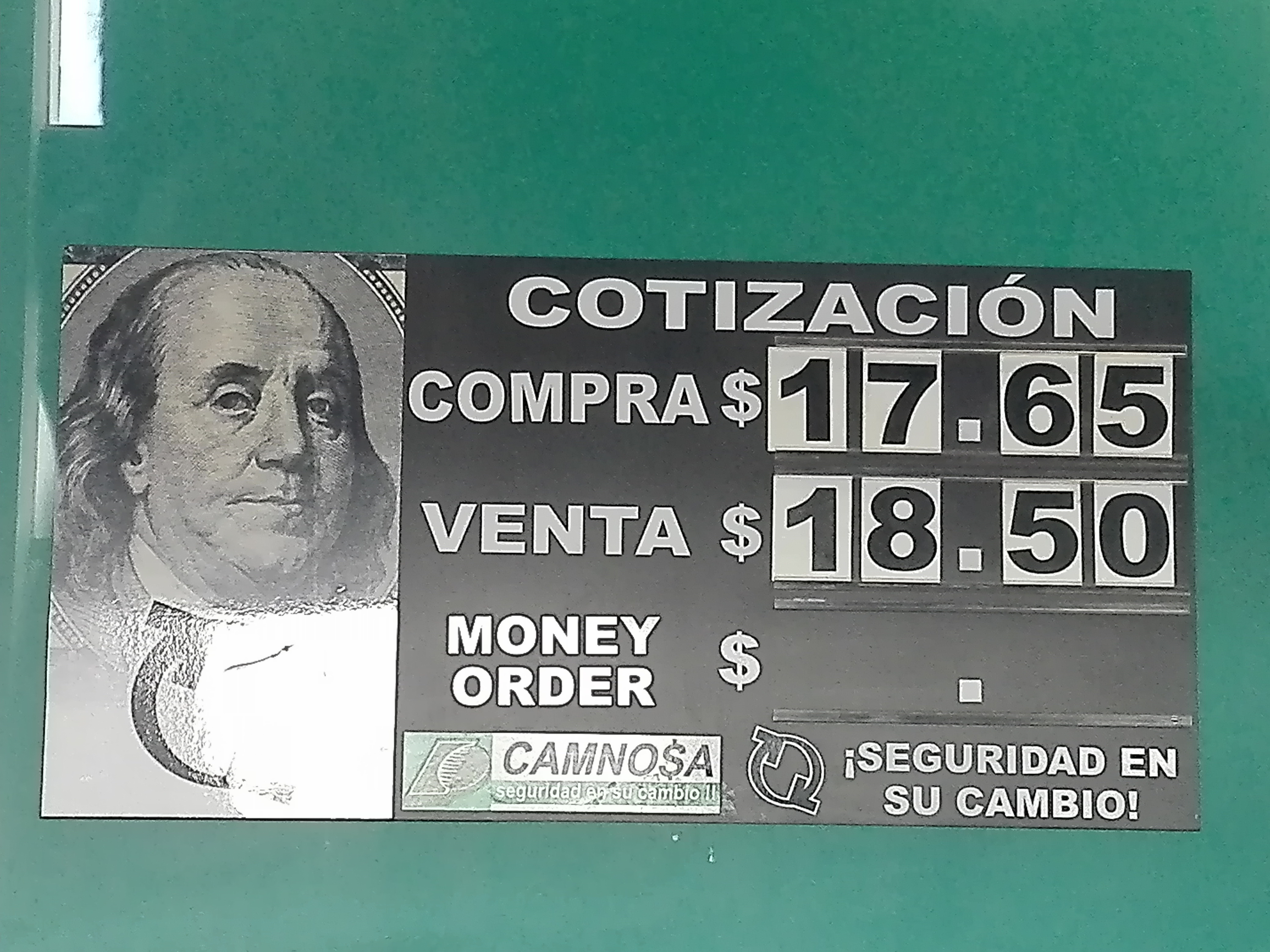 La casa de cambio camnosa ubicó el dólar a la venta en 18.50, mientras que a la compra fijo un precio en 17.65 pesos.