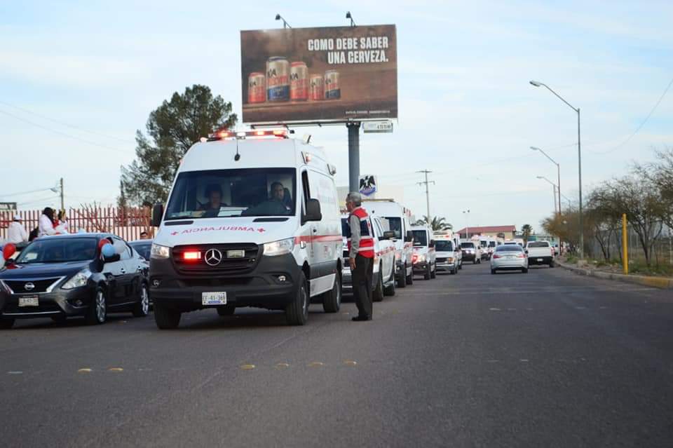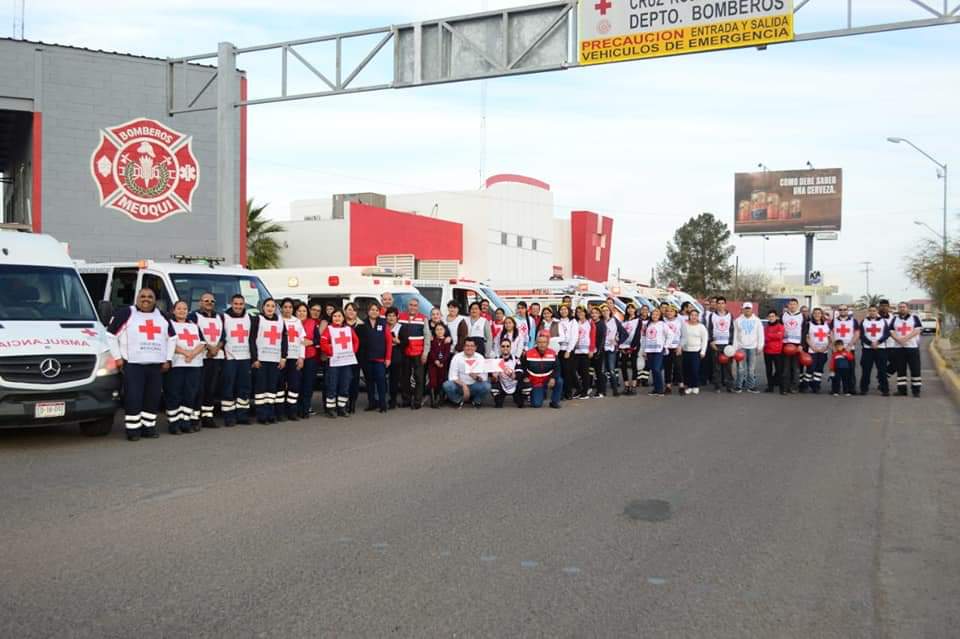 Delicias.-De forma simultánea delegaciones de Cruz Roja Mexicana conmemoraron su 110 aniversario al servicio de la ciudadanía con un recorrido en los municipios de Delicias, Meoqui, Saucillo y Julimes.