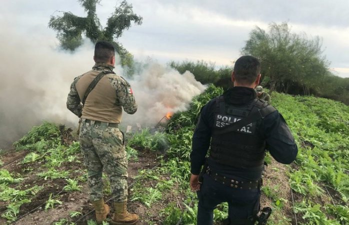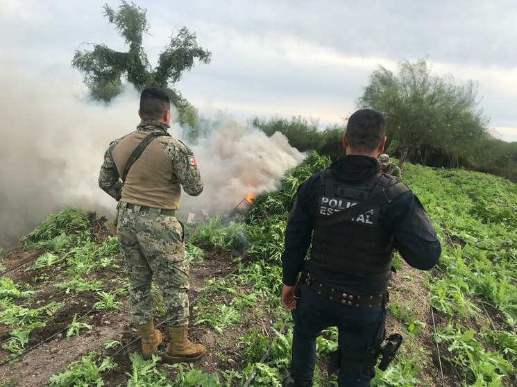 Ciudad de México. Personal de la Secretaría de Marina Armada de México (Semar) adscrito a la Cuarta Zona Naval, con sede en Mazatlán, Sinaloa, del 19 de enero a la fecha ha llevado a cabo la localización y erradicación de plantíos de mariguana y amapola en inmediaciones de Culiacán, Sinaloa, que en conjunto sumaron más de 99 mil kilos de enervantes.