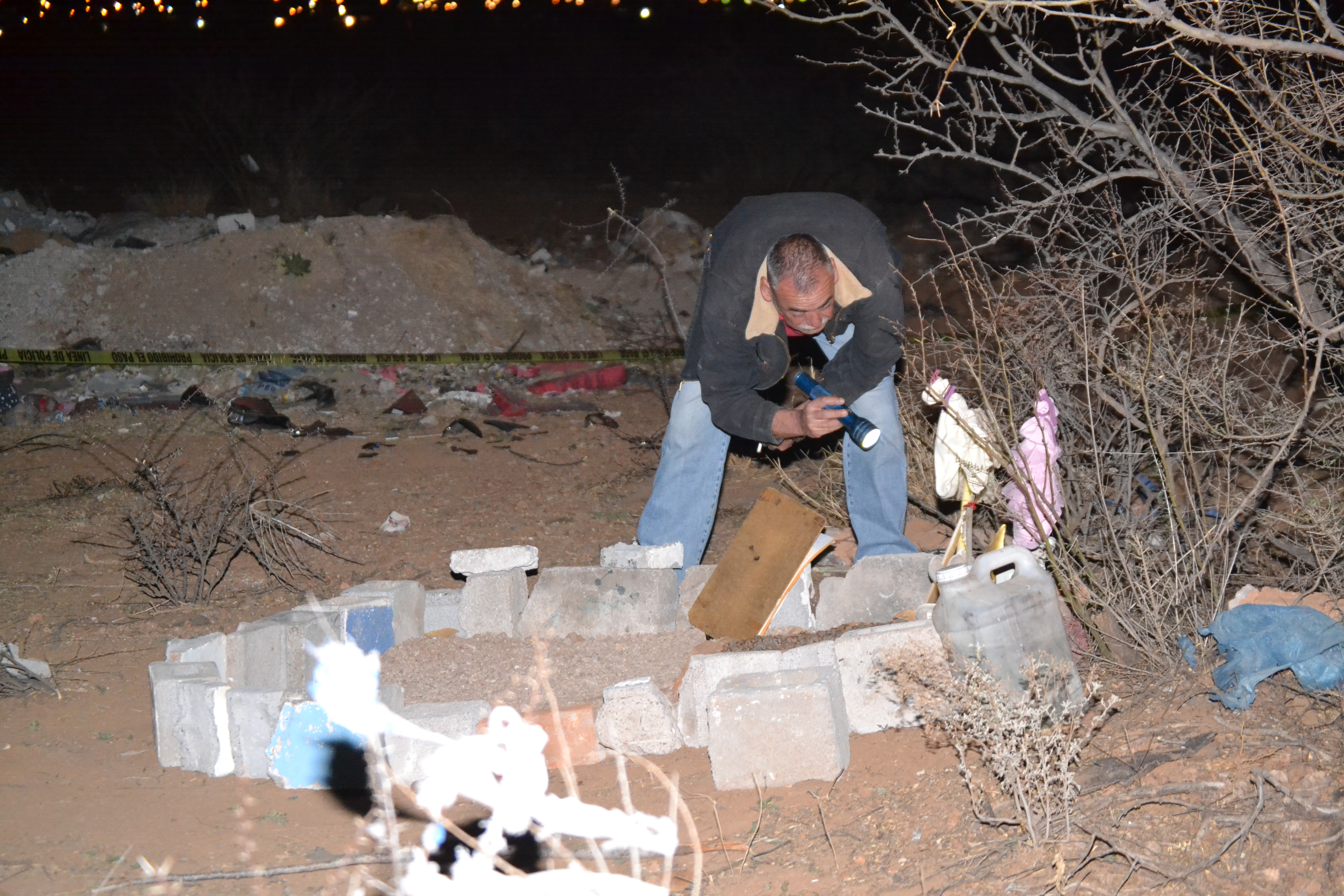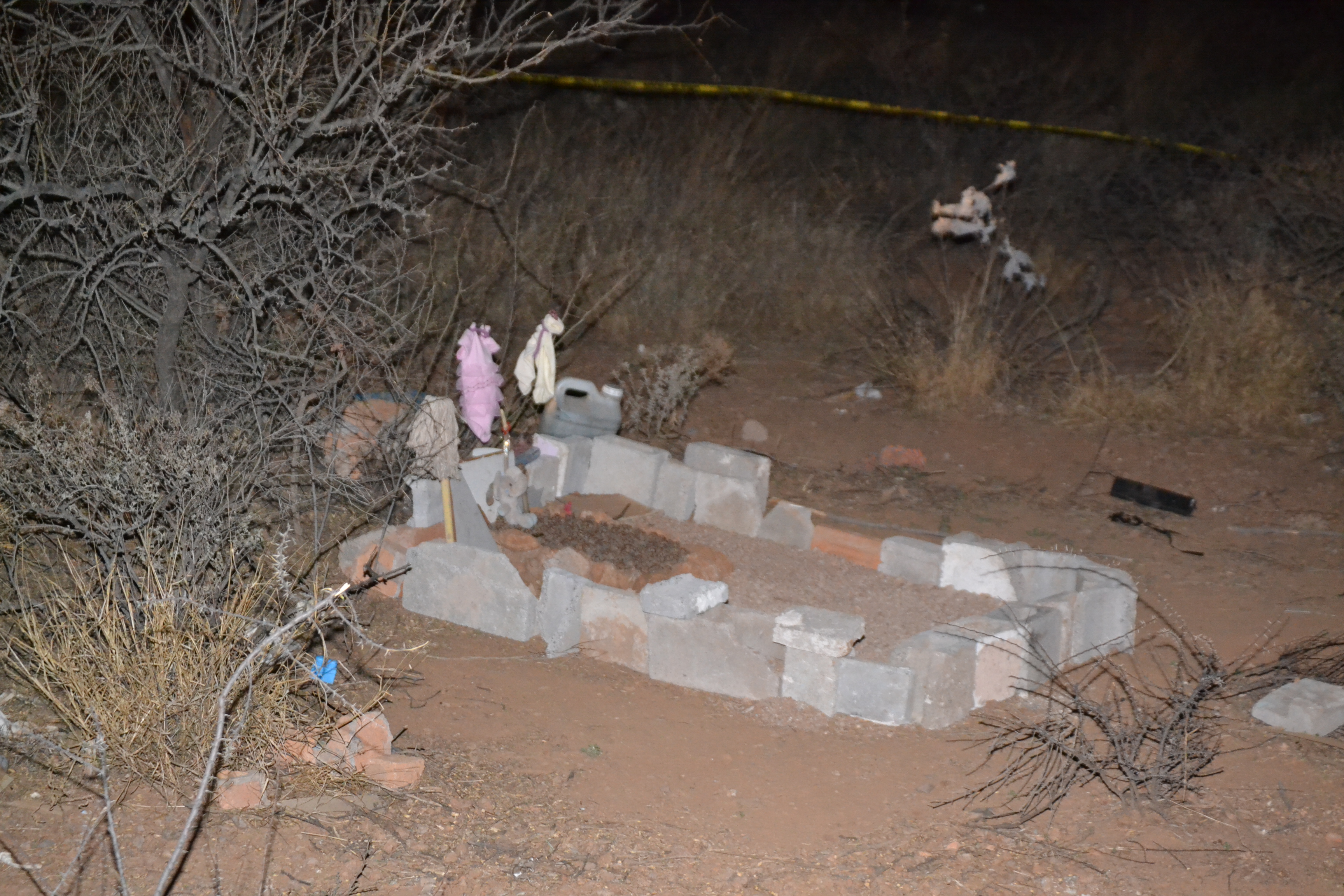 Los primeros informes indican que vecinos de la colonia ladrilleras pasaban por el lugar y observaron un cerco de piedras a la acercarse localizaron lo que pudiera ser una tumba de una bebé en la cual se localizaron monos de peluche y ropa para bebé.