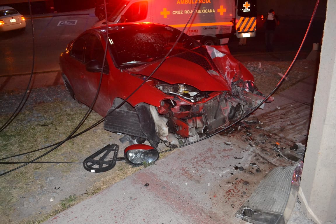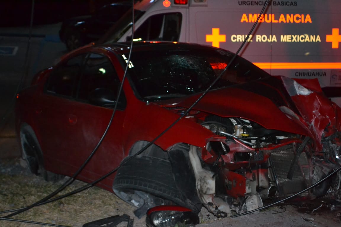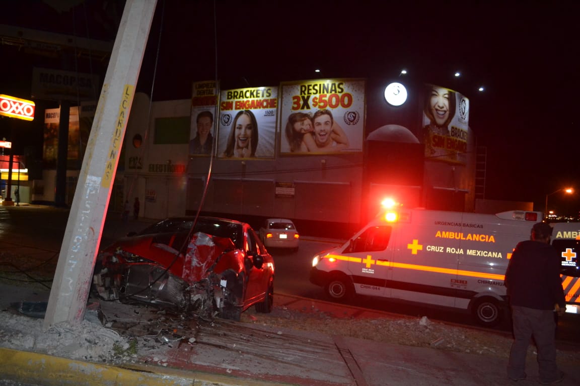 Chihuahua.-Un par de jóvenes sufrieron un aparatoso accidente al norte de la ciudad impactando la unidad contra un poste.