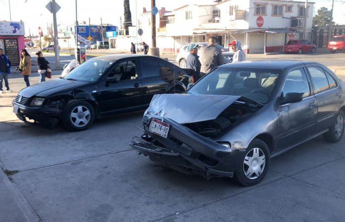 Chihuahua.- La mañana de este miércoles se presentó un choque entre dos unidades en el cruce de la avenida de las Industrias y 16 de septiembre en la colonia Villa.