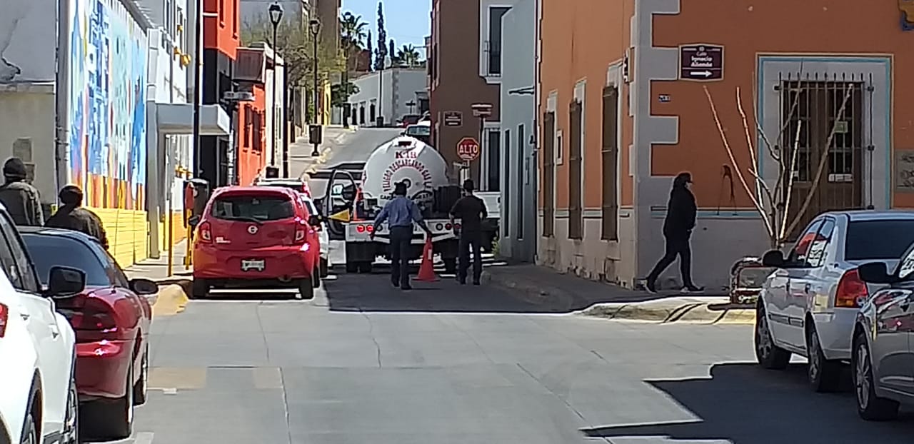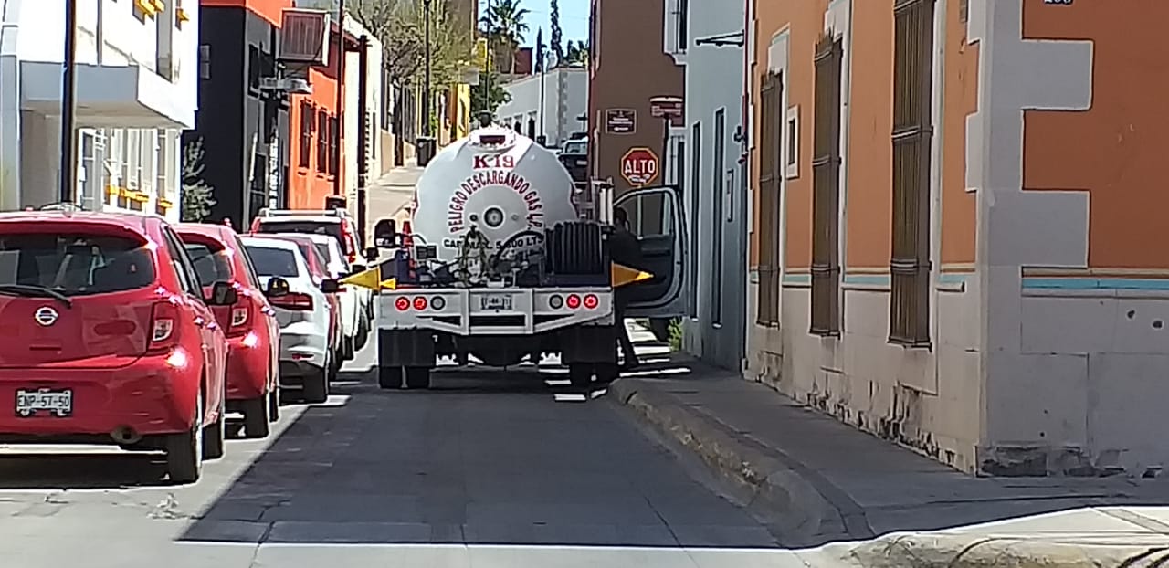 Chihuahua. – Empleados de una empresa gasera interrumpieron el tráfico en la calle segunda, en las estrechas calles de la ciudad, para cargar combustible en un negocio ubicado en la esquina de Ignacio Allende, provocando una larga fila de carros.