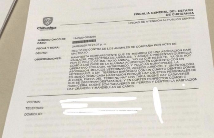 Chihuahua.- El pasado 24 de febrero, se interpuso ante la FGE zona centro una denuncia penal, por el delito en contra de los animales de compañía por acto de maltrato.