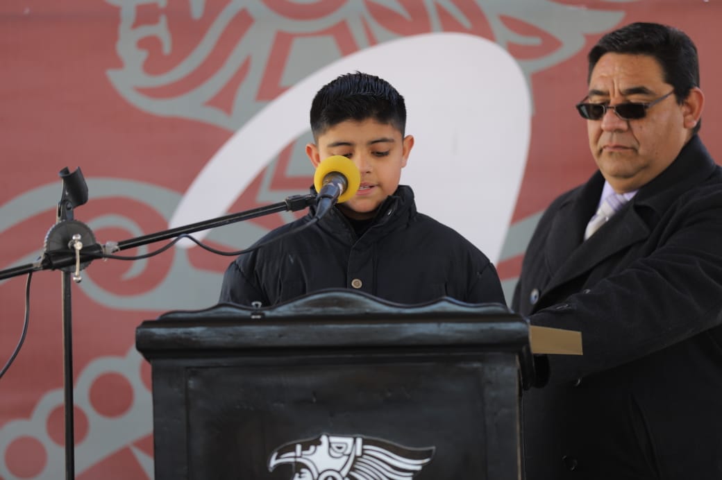 El alumno Alán Jesús Payán Cano, de 5 grado, se encargó de dar la bienvenida al Alcalde.
