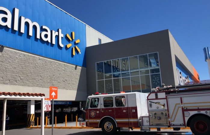 Chihuahua.-Una fuga de gas en el Walmart de Periférico de la Juventud alerto a las autoridades.