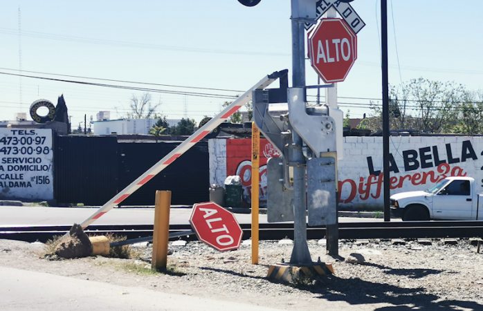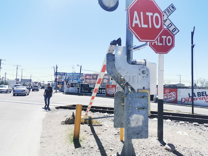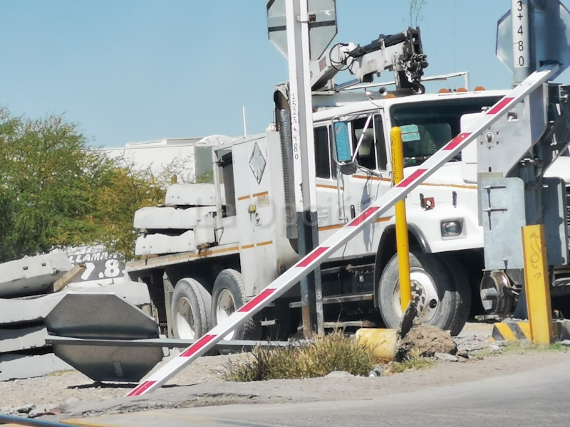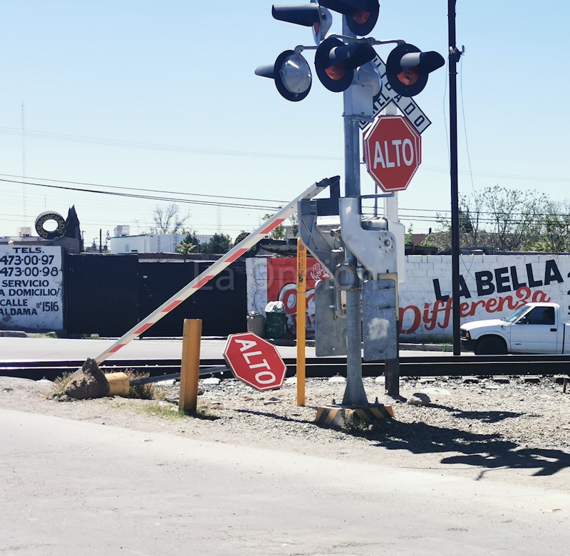 Meoqui.-¡¡Otra vez!!. Un imprudente conductor, volvió a derribar la pluma de seguridad en el cruce ferroviario de la calle Aldama. El responsable huyó para no responder por los daños.