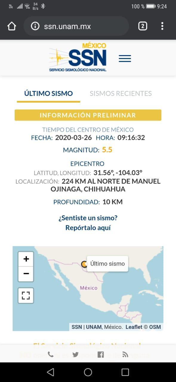 Usuarios han divulgado supuestas imágenes donde señalaron que fue de una magnitud de 5.5 grados con epicentro en la ciudad de Ojinaga.