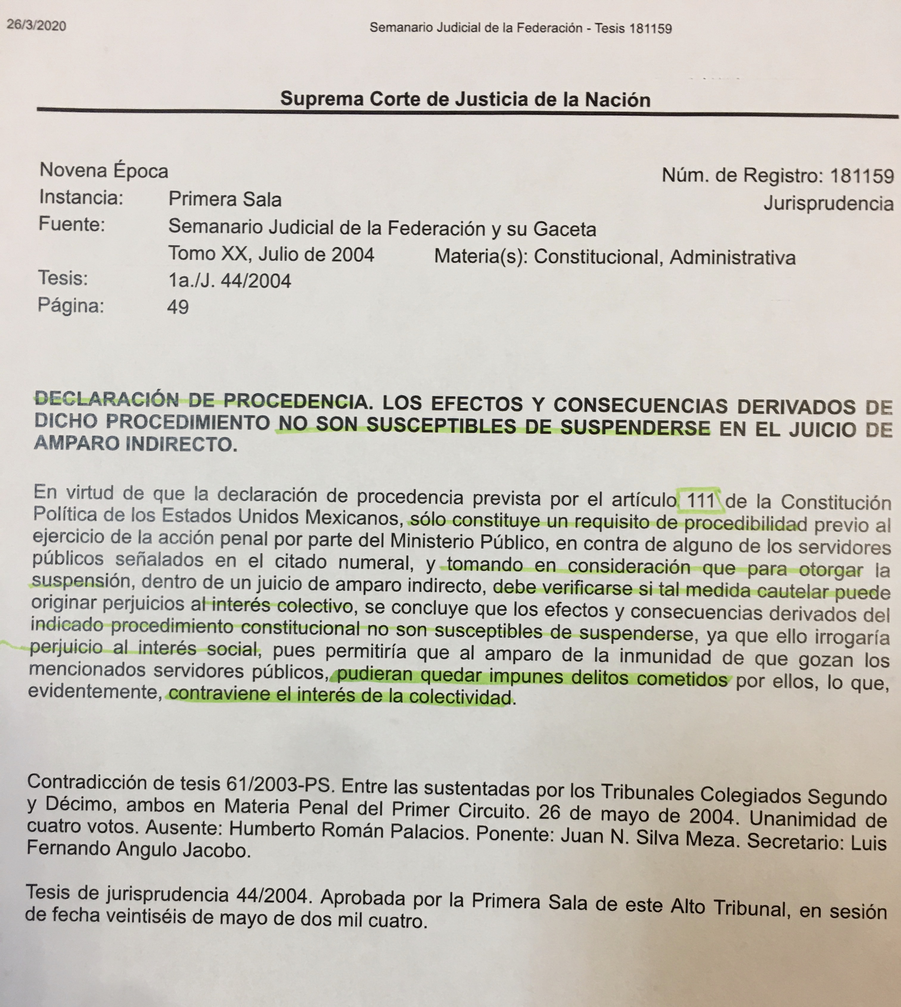 Restituir, anular o regresar el fuero es una violación a la jurisprudencia de la Suprema Corte, sentenció.