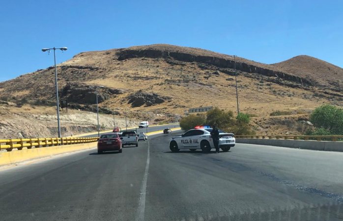 Agentes de la policía vial cerraron dos carriles de la carretera para prevenir mayores accidentes viales.