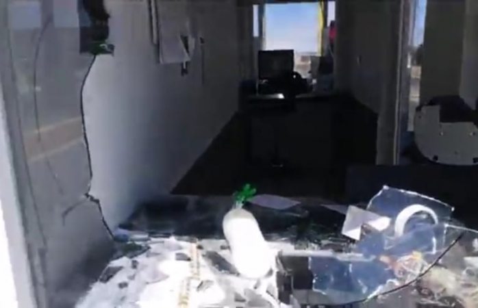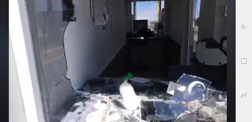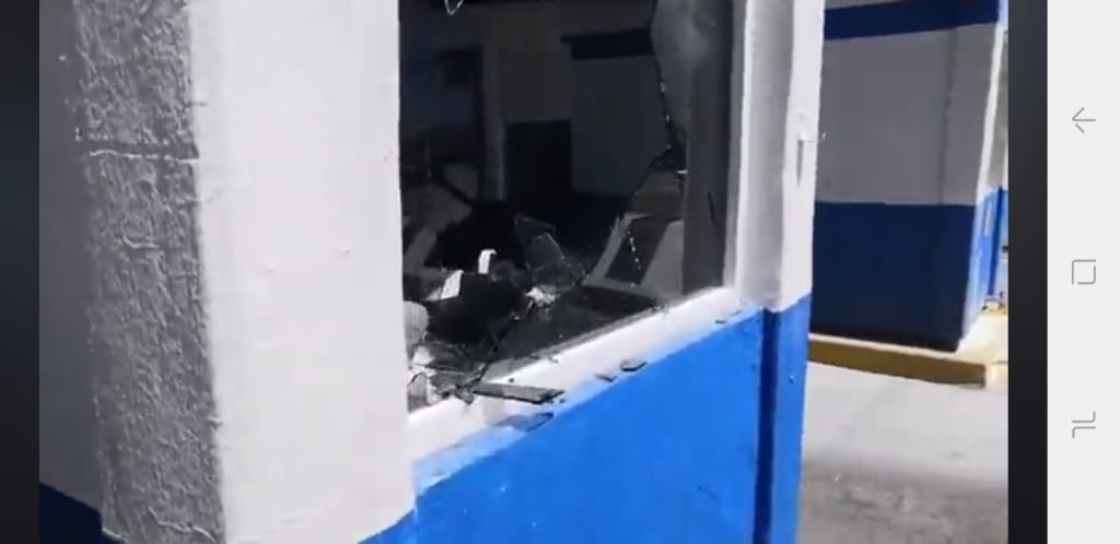 Al mediodía de este jueves, un grupo de hombres y mujeres llegaron y quebraron los cristales de cada uno de los cubículos del inmueble.