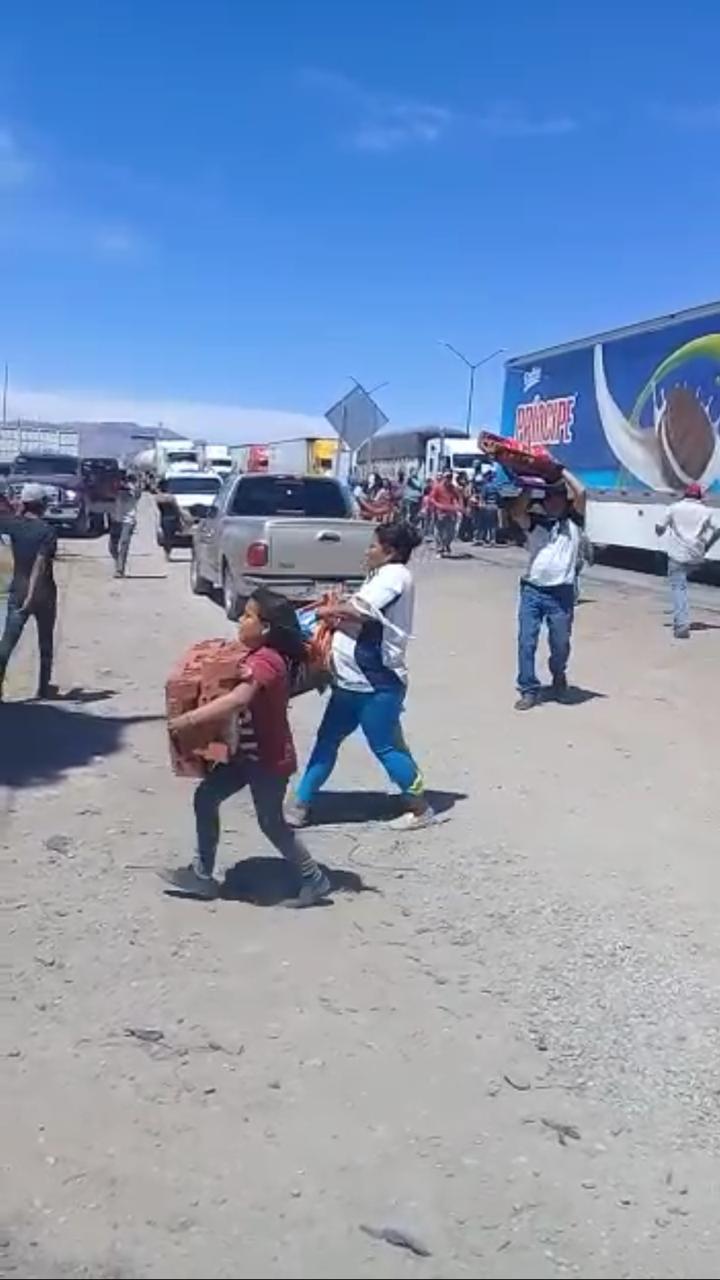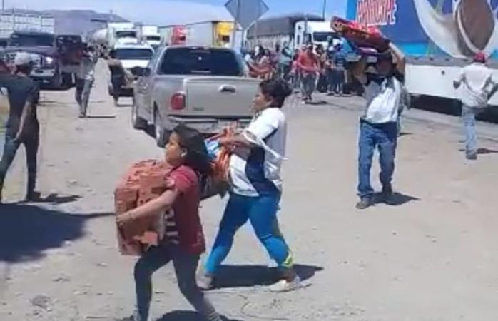 Debido al bloque de los productores de la región que cerraron la carretera en protesta por el pago de agua a los estados unidos, la rapiña acabó con la carga.