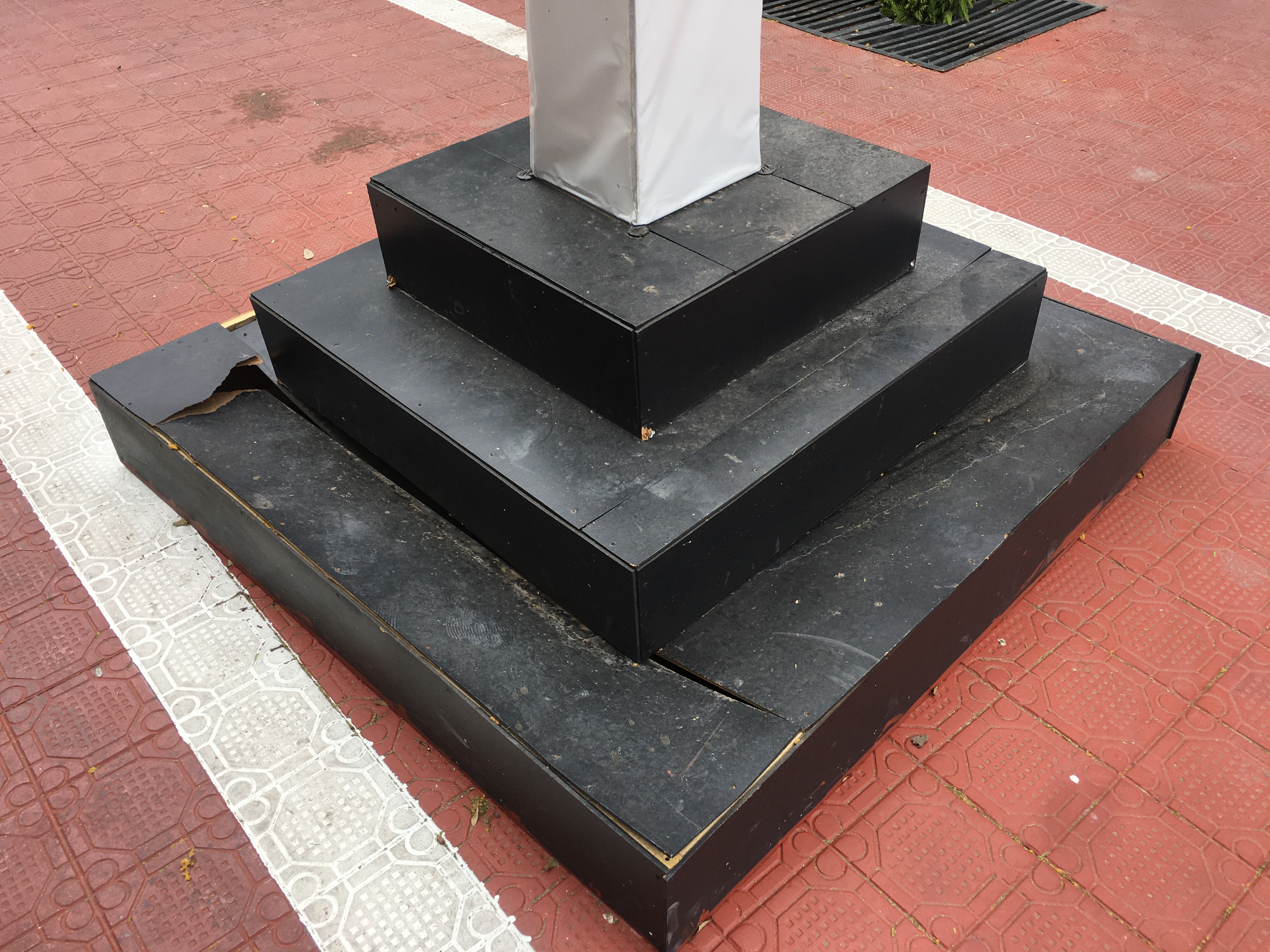 La estructura simbólica también luce despintada y quienes la colocaron no le dieron seguimiento al mantenimiento de la misma y podría caer en cualquier momento.