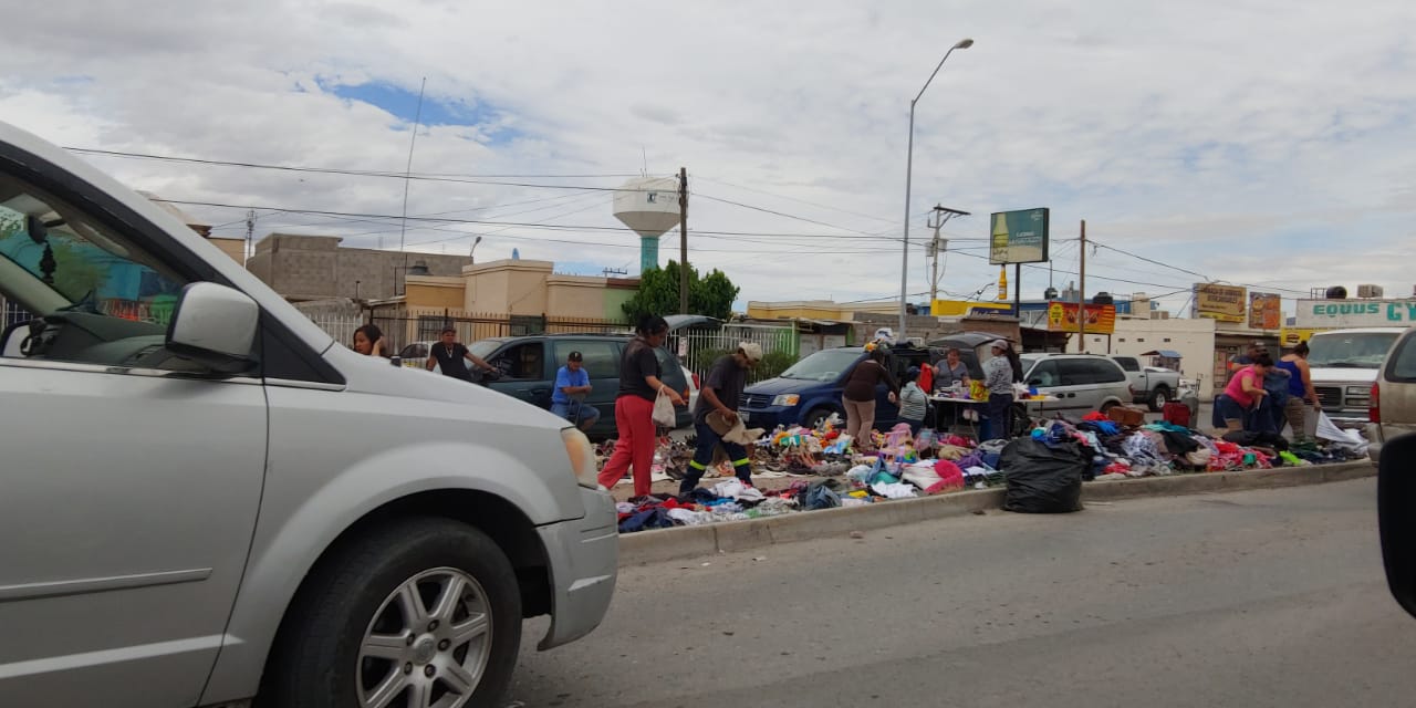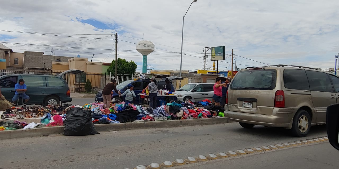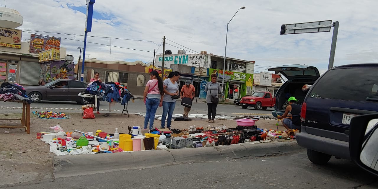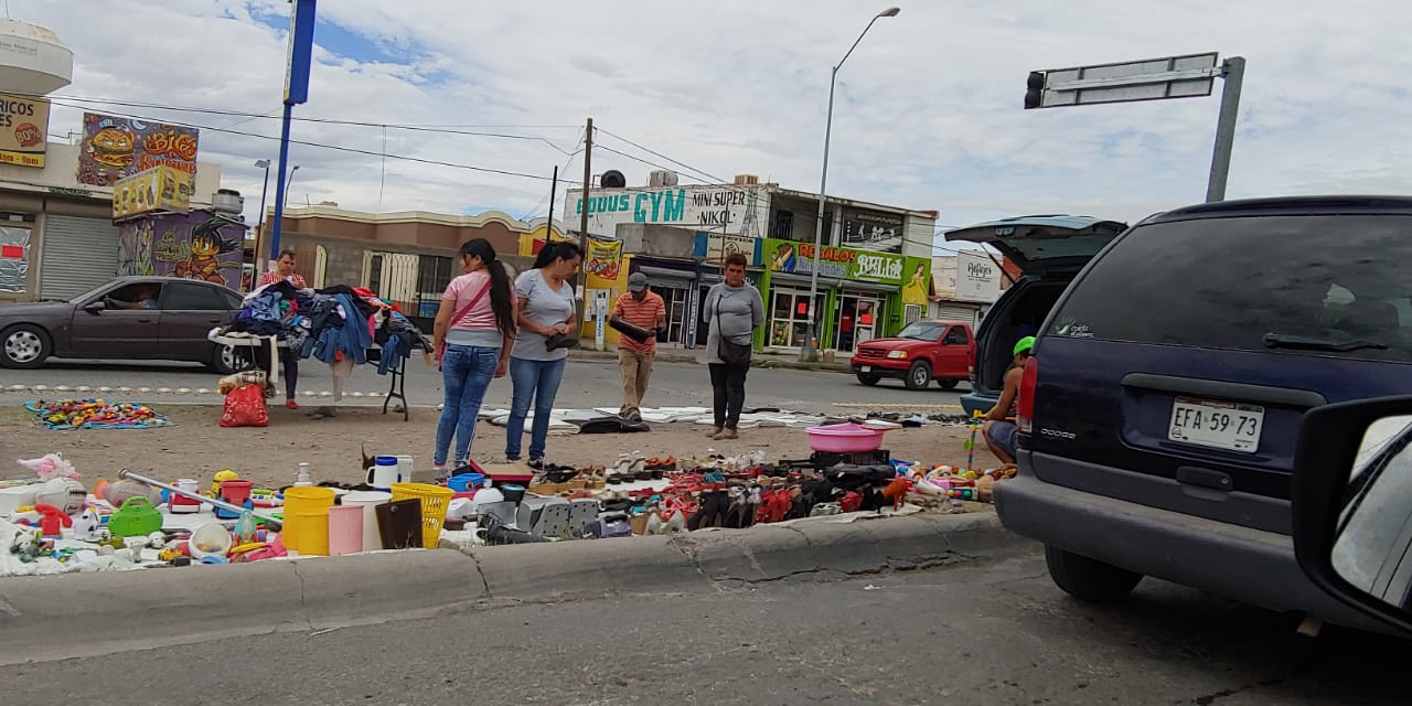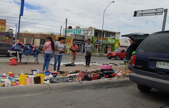 Chihuahua.- Pese a las recomendaciones emitidas por las autoridades a no salir a las calles, tianguistas permanecen instalándose para realizar sus ventas.