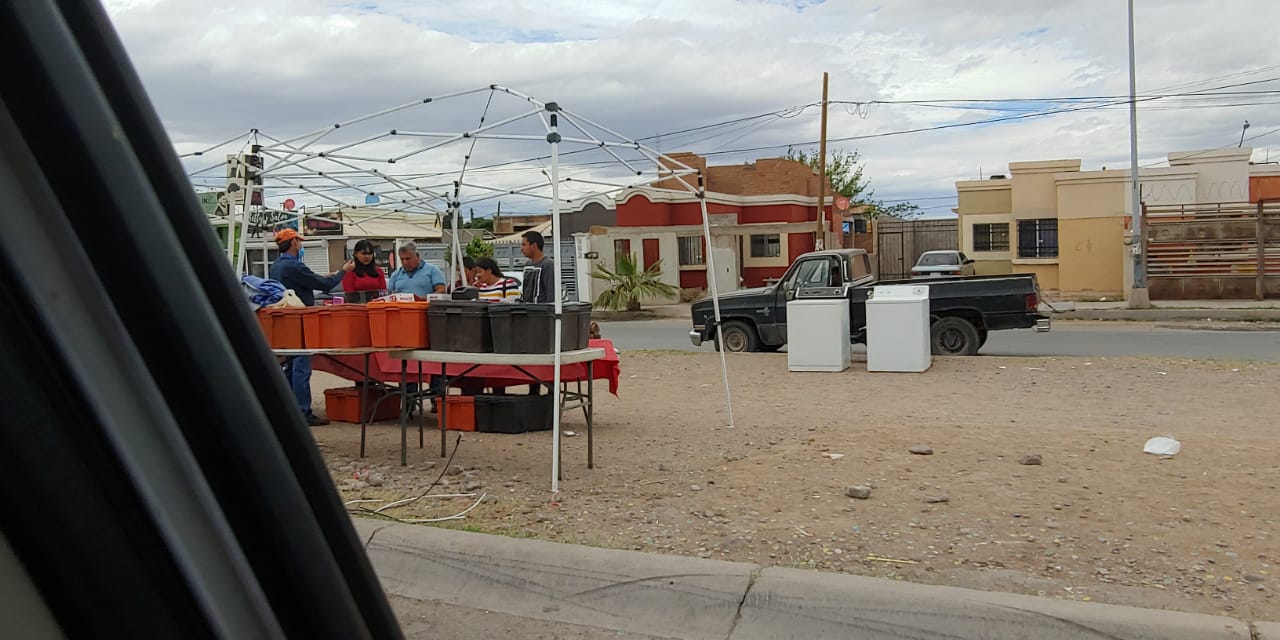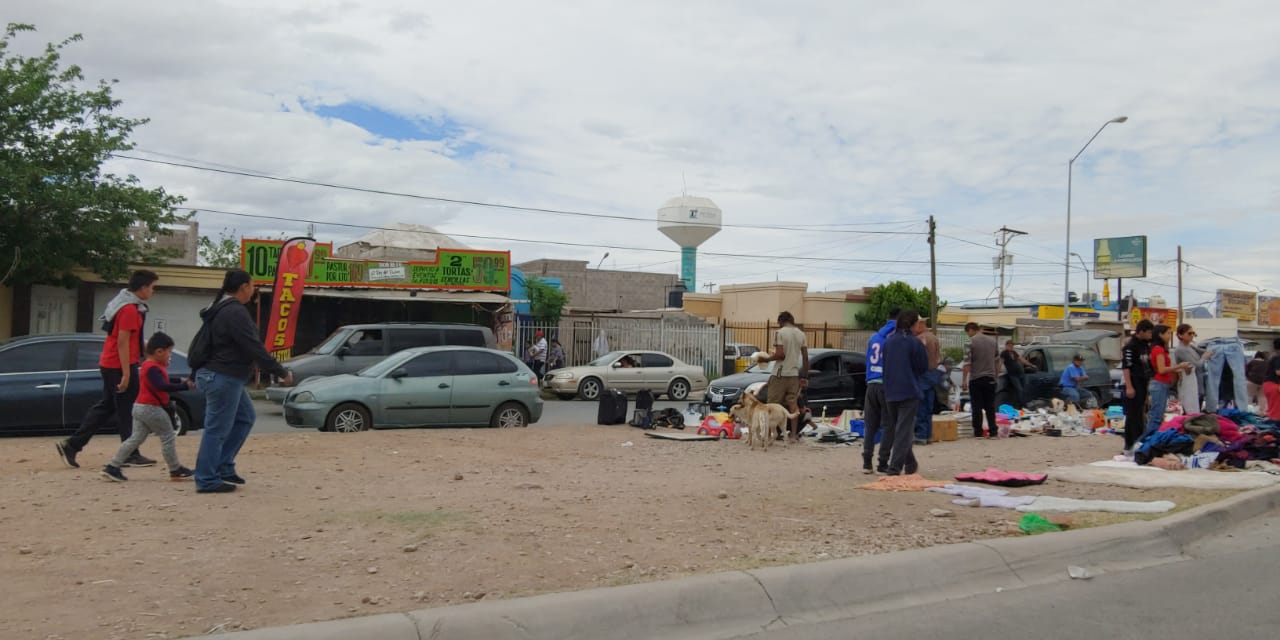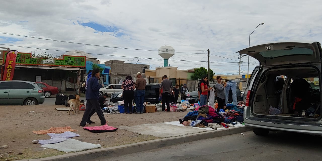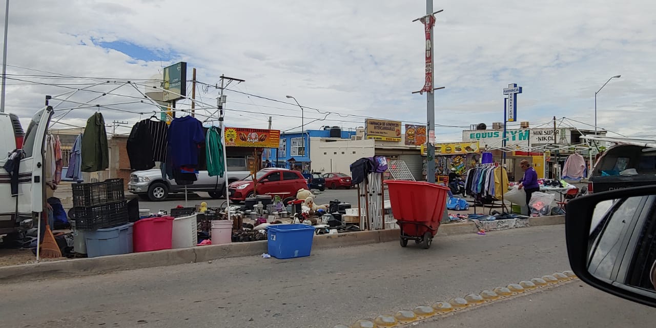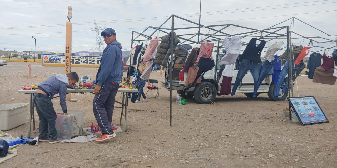 Chihuahua.- Pese a las recomendaciones emitidas por las autoridades a no salir a las calles, tianguistas permanecen instalándose para realizar sus ventas.