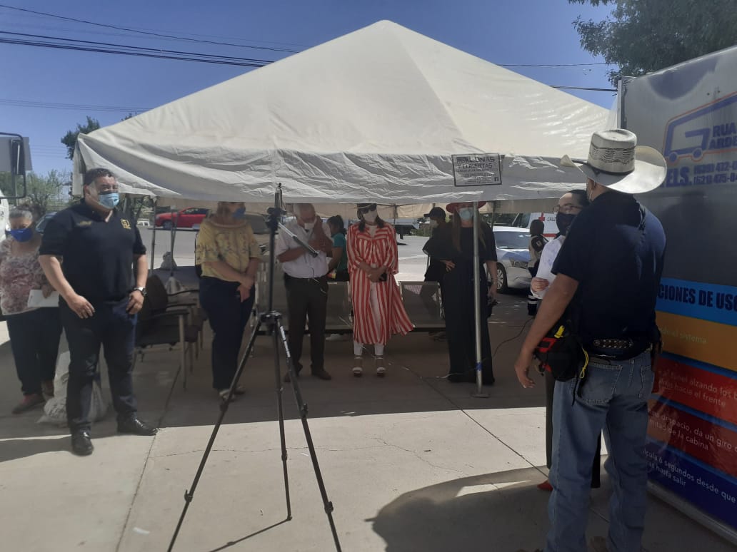 En la entrega estuvo presente el director de la clínica 13 del IMSS, Jesús Cristo Hernández Ibarra, la alcaldesa Aide López De Anda, las hermanas Gardea y el representante de la Cámara Nacional de Comercio (Canaco).