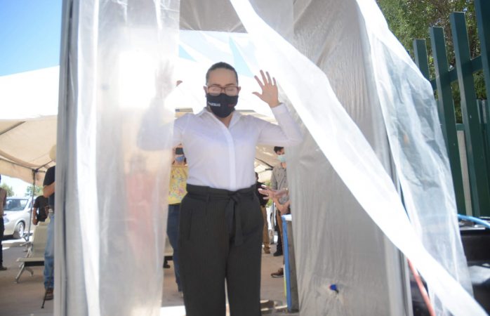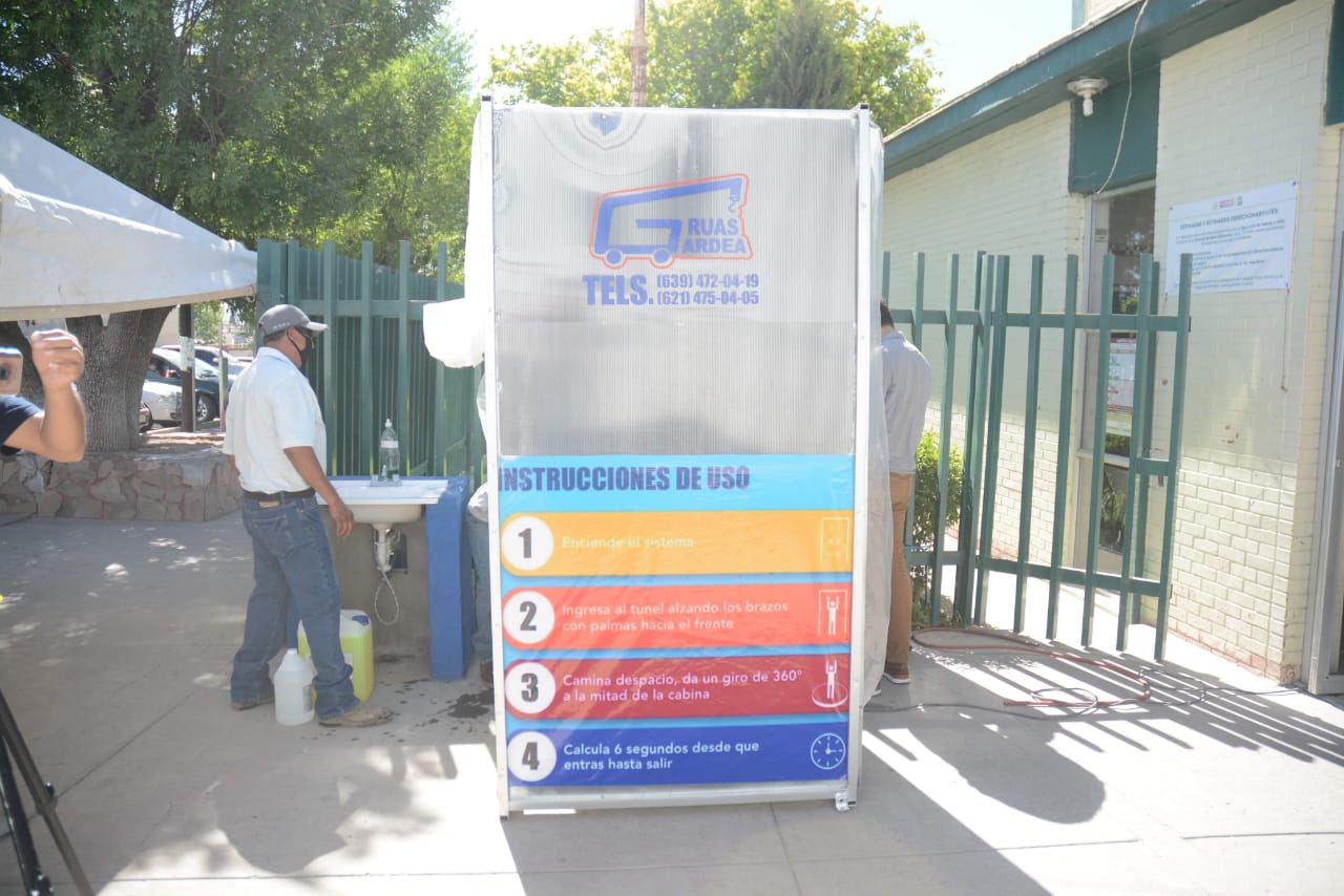 Saucillo.- La familia Gardea, reconocida por el servicio de grúas en toda la región, hizo la donación y colocación del túnel sanirizante en la unidad familiar número 13 del Instituto Mexicano del Seguro Social.