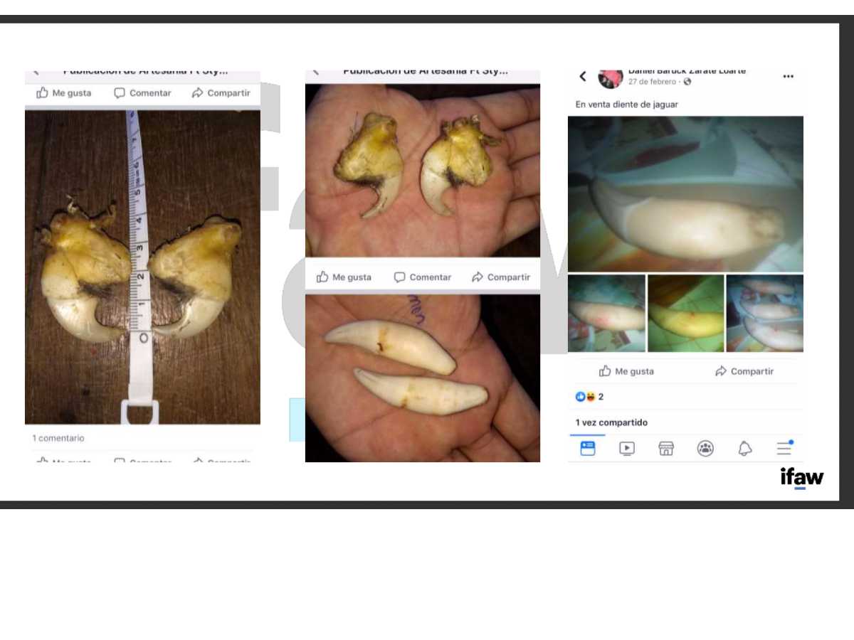 Agregó que los anuncios en Facebook eran muy fáciles de encontrar, aún cuando el jaguar es una especie protegida por la legislación mexicana y por el Apéndice I de la Convención sobre el Comercio Internacional de Especies Amenazadas de Fauna y Flora Silvestres (CITES).
