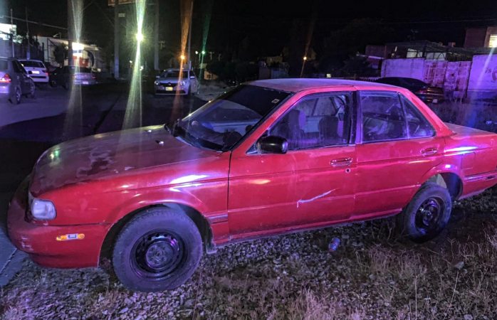 Se trata de un vehículo Nissan Tsuru, color rojo y con placas de circulación EGL-94-07, el cual habían robado sin violencia de la calle Paseos Salernitano, el día 21 de mayo y fue localizado este día en la calle 8 de Julio y López Mateo.
