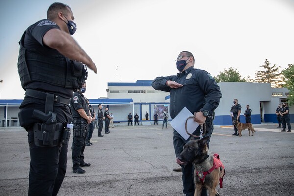 En una breve, pero sentida ceremonia que fue realizada en el campo de entrenamiento del grupo especial K9, el director de la DSPM, comisario Gilberto Loya Chávez, expresó su apoyo y agradecimiento a los elementos que cuidan de los ejemplares y los felicitó por la loable labor que realizan en el cuidado de los ciudadanos.