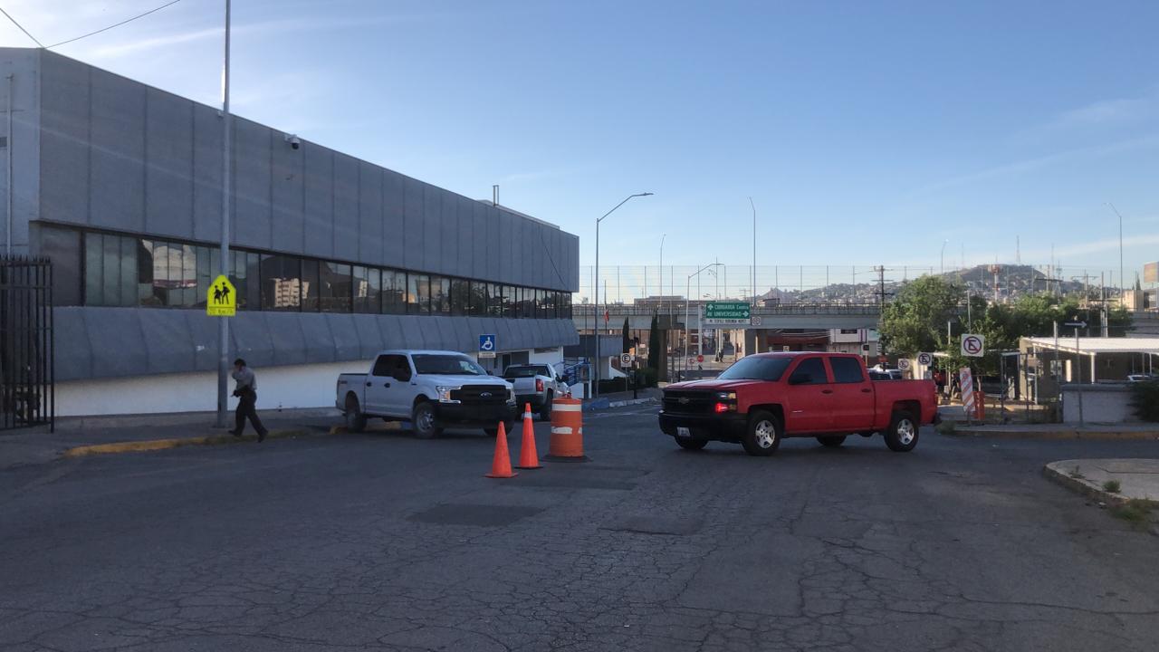 Agentes de las policías estatal, vial y ministerial, mantienen cerrado el paso en canal y 25, en donde se hallan ubicadas las oficinas mencionadas.