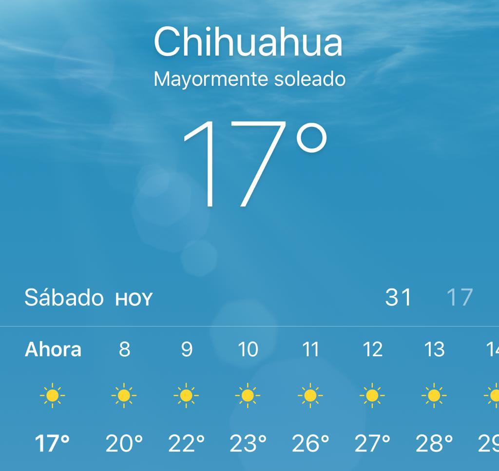 Chihuahua.- La mañana de este sábado, la capital amaneció soleada y con una temperatura de 17°C.