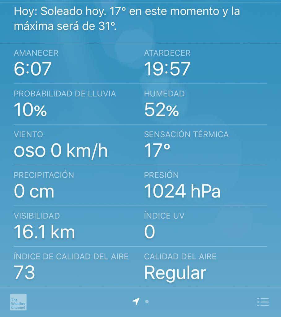 La visibilidad a las 7 am es de 16.1 km, y la calidad del aire es regular.