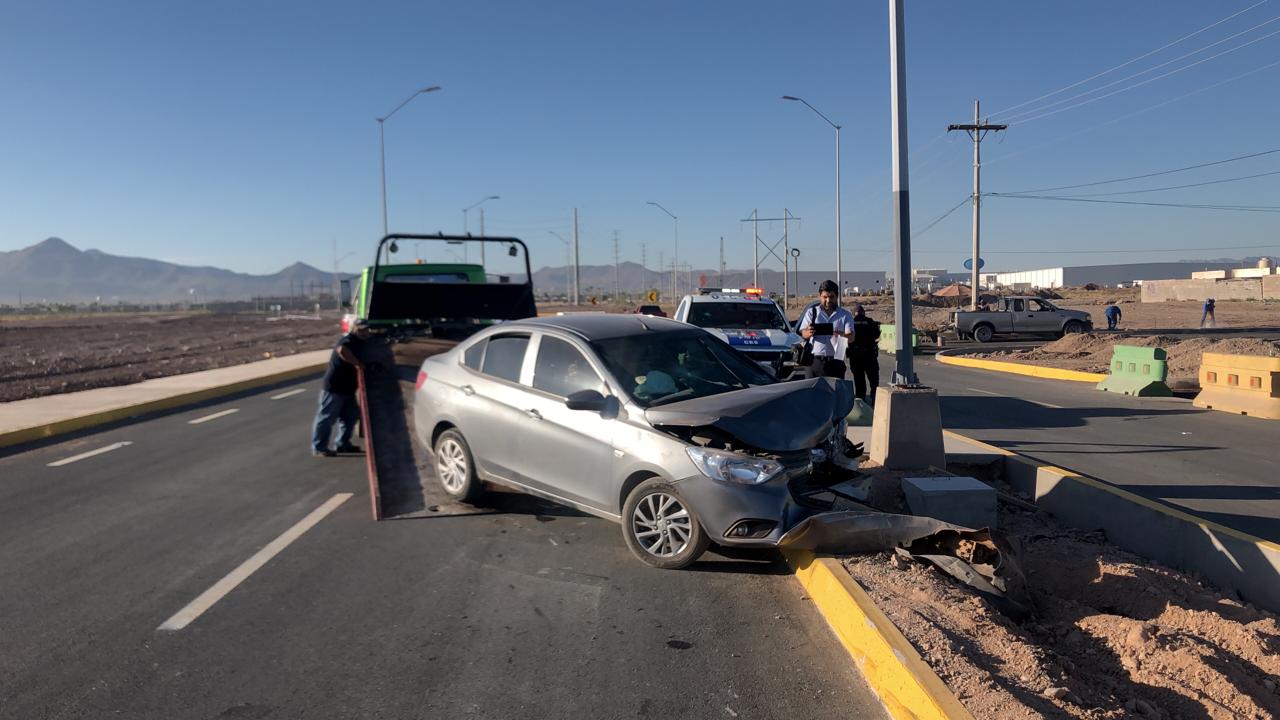 El incidente se dio cuando el conductor del vehículo, un Chevrolet Aveo, perdió el control de la unidad y se subió al camellón central del camino.