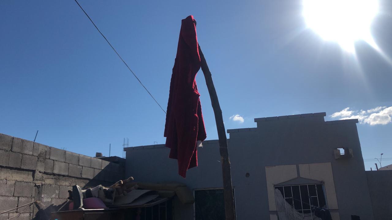 Chihuahua.- Una familia de la colonia Jardines de Oriente sacó la bandera roja para pedir el apoyo de la ciudadanía.
