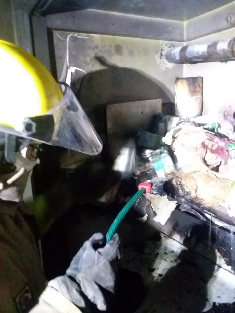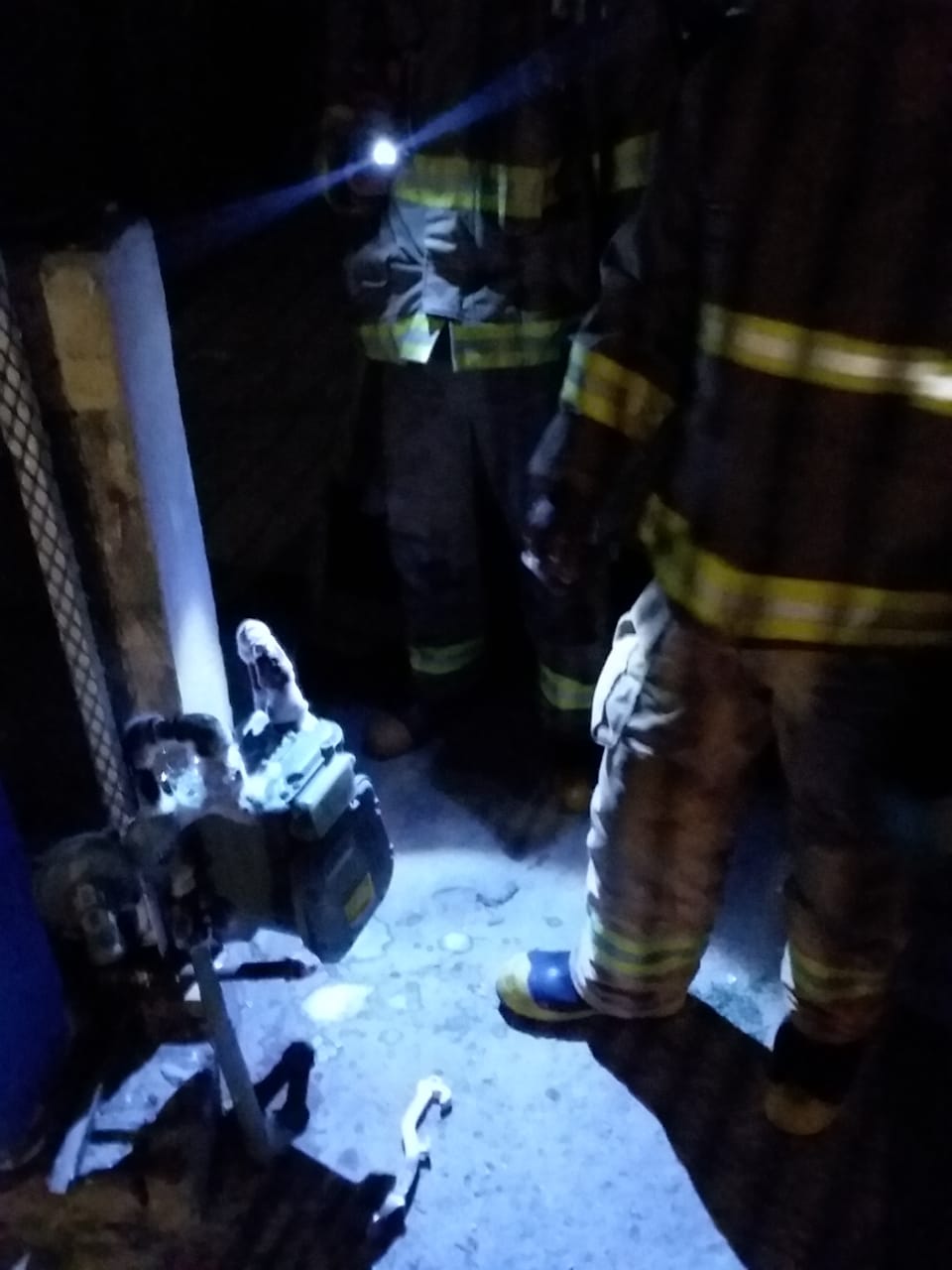 Con el apoyo de la máquina extintora 06, se encargaron de extinguir el fuego en un cuarto de 2 por 1 metro utilizado como cuarto de lavado.