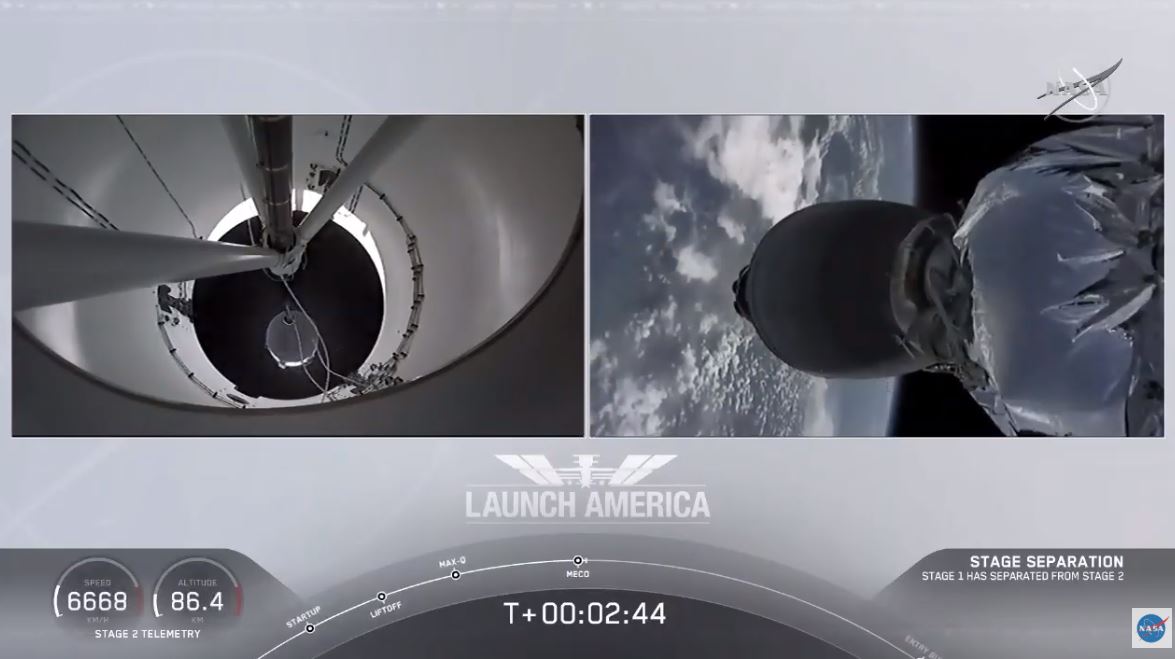 Florida.- En el segundo intentó, despegó hoy con éxito el cohete Falcon 9 con la cápsula Crew Dragon, en la que dos astronautas de la NASA se dirigen a la Estación Espacial Internacional (EEI).