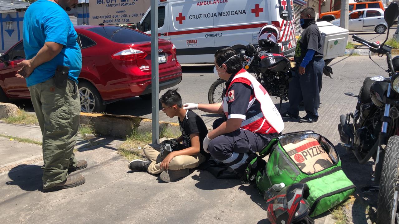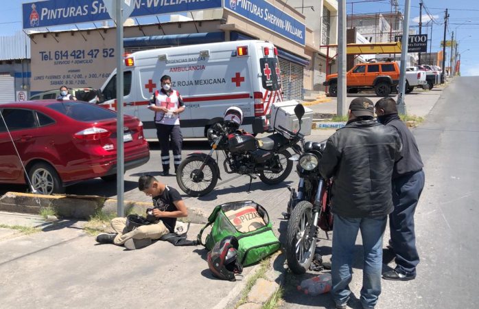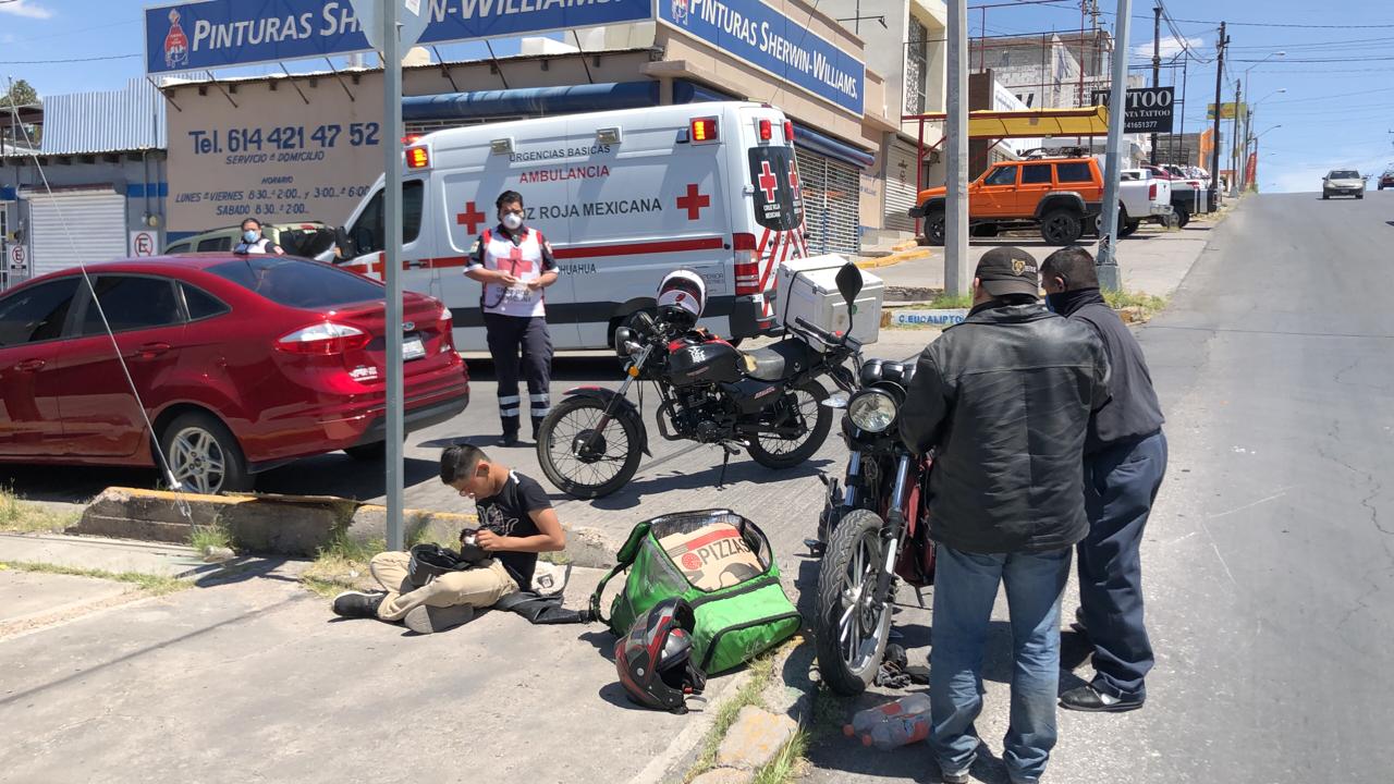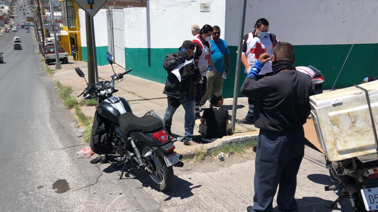 Chihuahua.- Dos personas resultaron lesionadas al caer de una motocicleta sobre la avenida José María Iglesias, luego de que una camioneta les cerrara el paso y chocaran contra ella.