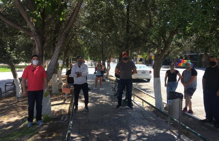 Chihuahua.- Propietarios y usuarios de los diferentes gimnasios que hay en la ciudad, se reunieron en la Plaza del Ángel con el fin de exigir a las autoridades locales que se les permita reanudar sus actividades lo antes posible.
