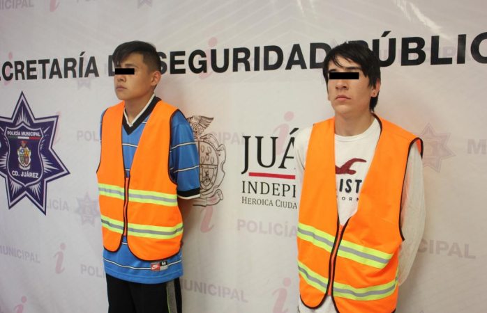 Juárez.- Agentes de la Secretaría de Seguridad Pública Municipal realizaron el arresto de Miguel Ángel C. G. y Aarón G., por su presunta responsabilidad en la comisión de delitos contra la ley federal de armas de fuego y explosivos y promoción de conductas ilícitas.