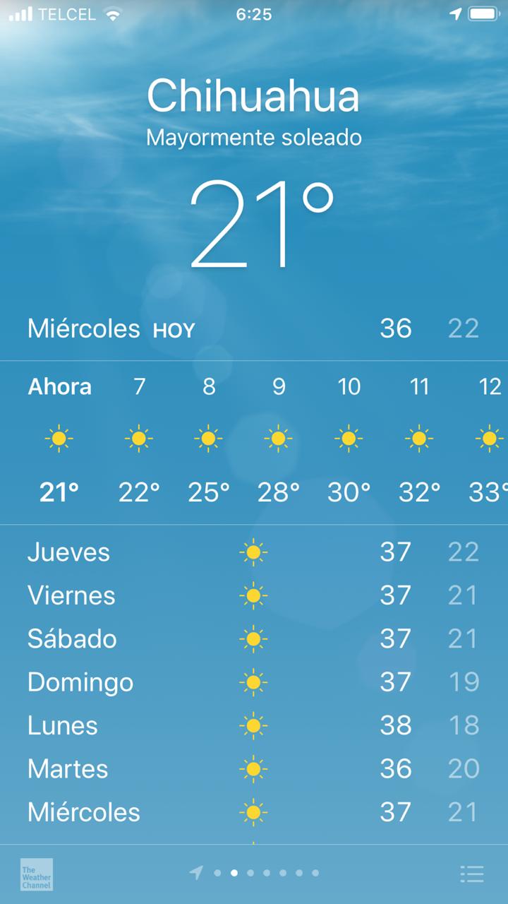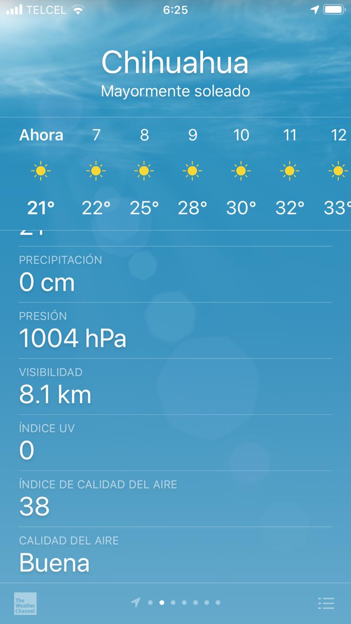 Chihuahua.- La temperatura marcó 21 grados centígrados a las 06:30 horas de este miércoles en la capital del estado.