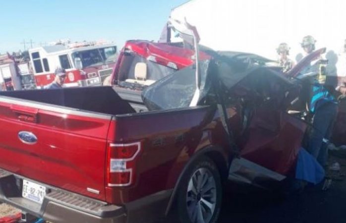En el lugar se dio fe de una persona fallecida que fue identificada como Elizabeth Fher Wiebe de 76 años de edad, quien viajaba a bordo del vehículo tipo pick up que se había impactado contra el vehículo de carga.