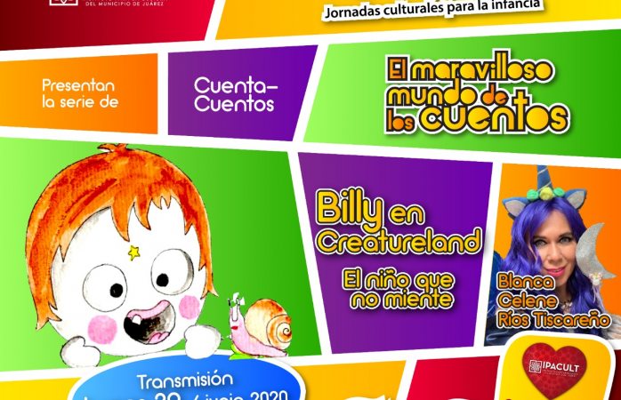 Juárez.- "El maravilloso mundo de los cuentos" programa de cuenta cuentos online para niños implementado por el Instituto Para la Cultura del Municipio de Juárez (IPACULT), tendrá este próximo lunes una nueva edición con la transmisión en vivo de la historia "Billy en Creatureland: El niño que no miente".