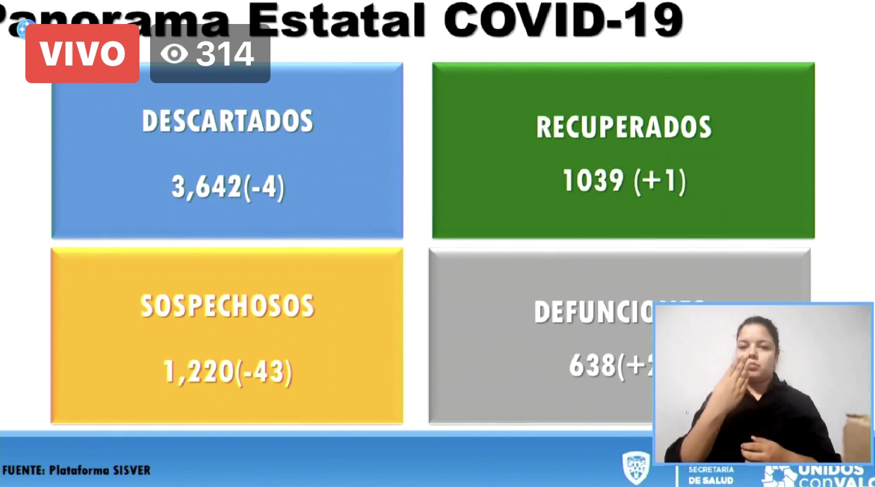 Solamente confirmaron dos defunciones a causa del coronavirus, por lo que la se elevó a 638.