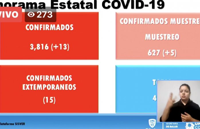 En cuanto a casos confirmados, hasta ayer a las 19 horas con los 13 nuevos contagios, la cifra se elevó a 3 mil 816.