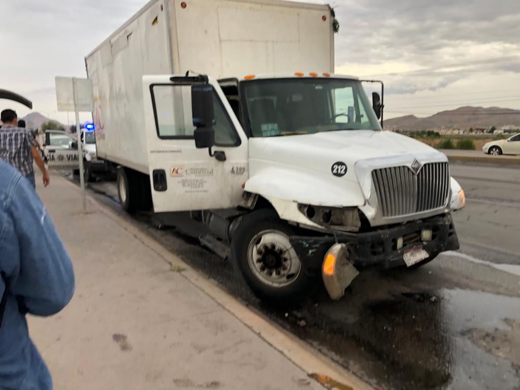 Los hechos ocurrieron a la altura de la Equus, cuando el conductor de un camión de carga, de la empresa Abastecedora Comercial, numero económico 212, impactó en la parte trasera al camión urbano de la ruta Jardines de Oriente, número económico 634.
